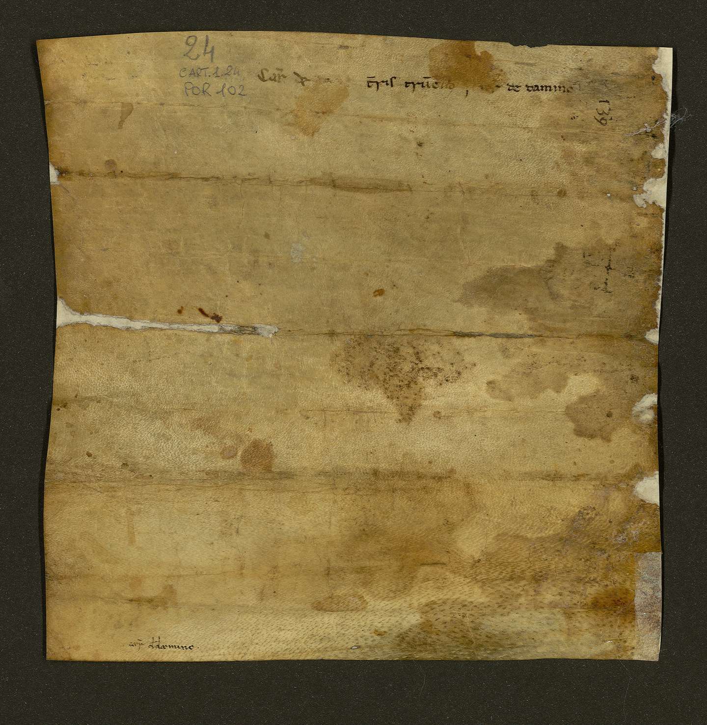 Urso, figlio di Giovanni di Falcofranco, vende a Damino, figlio del fu Pietro di Lucca, la metà di un pezzo di terra con olivi, la quarta parte di una noce, la metà di un olivo. La quarta parte di un pezzo di terra con querce e una terra con macchia, in località Troncito, al confine con la città di Campagna al prezzo di 40 tarì d’oro. Daniele, notaio.