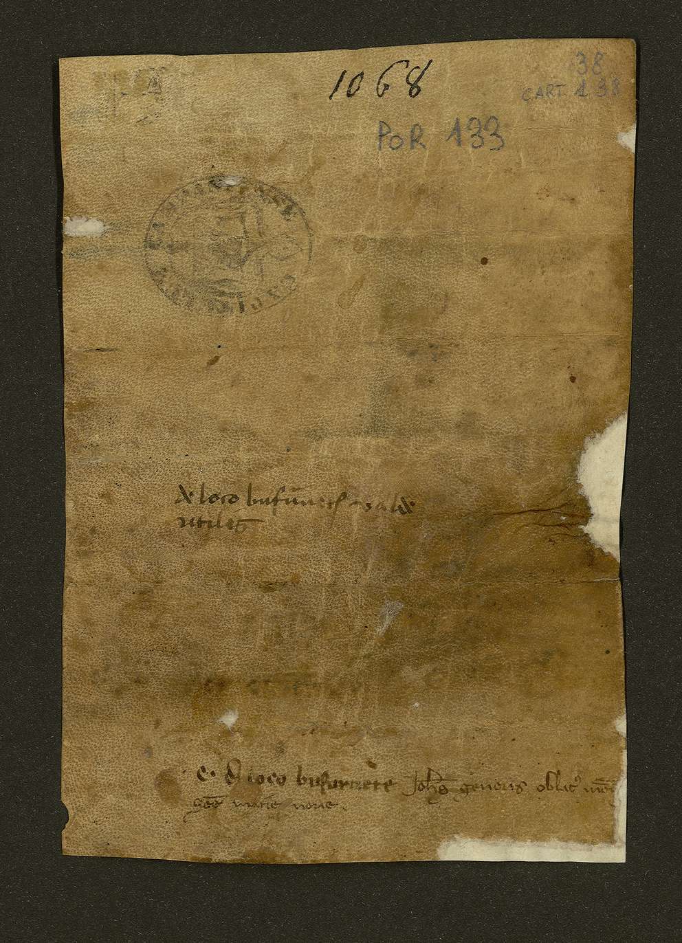 Maraldo detto Chierico, figlio del defunto chierico Maraldo, vende a Giovanni Ienco ed al fratello Pietro, figli del fu Mario di Gaita, per 16 tarì d’oro un pezzo di terra alla località Boforneta di Ariano confinante con la via pubblica di Saginara (Saynara). Giovanni, notaio.