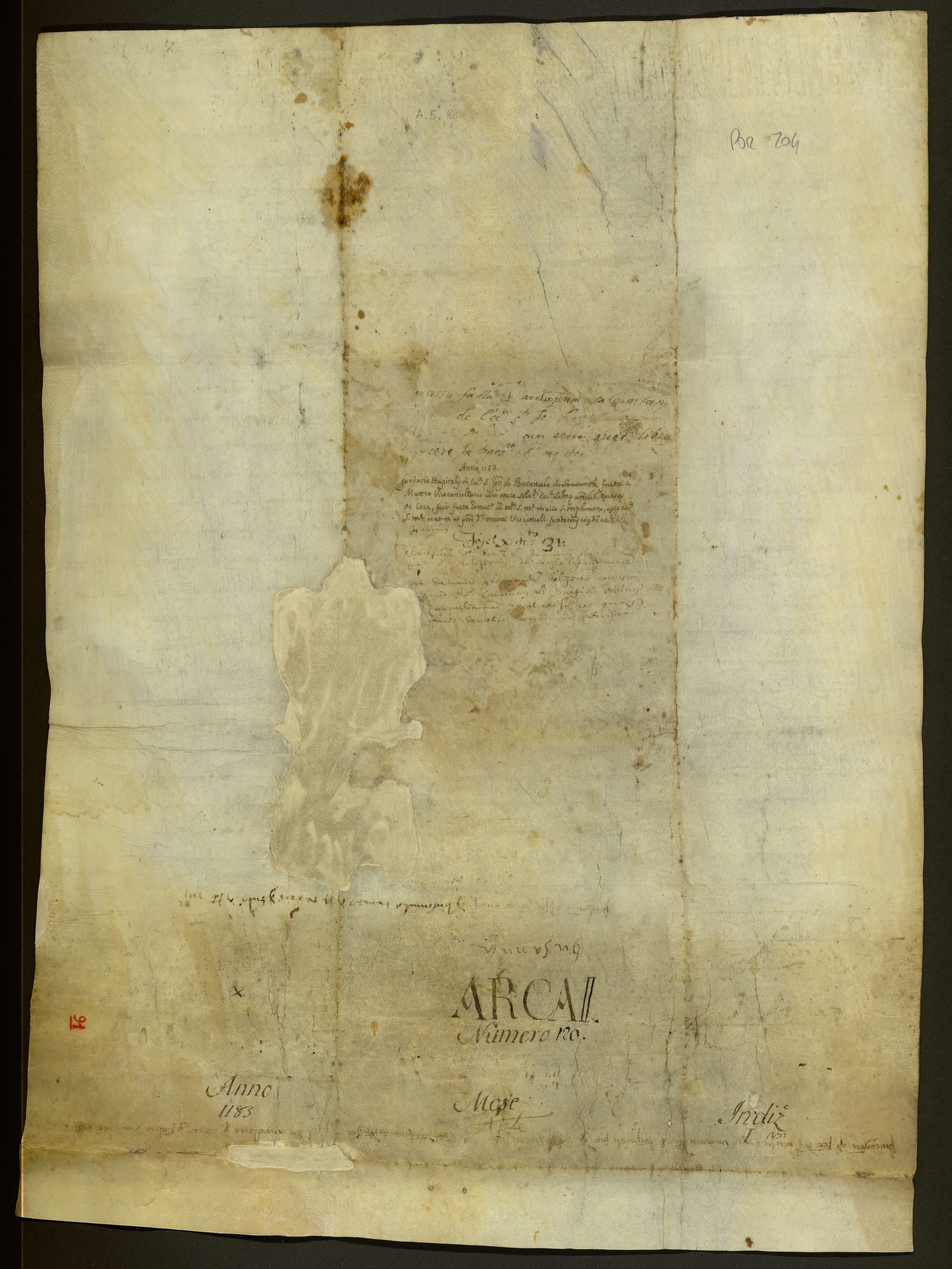 Matteo, vicecancelliere regio e familiare dell'arcivescovo salernitano, avendo ceduto a titolo di permuta a Nicola, arcivescovo di Salerno, la chiesa di S. Maria nel vicolo di S. Trofimena, da lui edificata, in cambio della chiesa di S. Giovanni de Busanola ove avrebbe dovuto costruire un ospizio per i poveri della città, stabilisce gli obblighi da corrispondere alla Chiesa salernitana. Giovanni, notaio