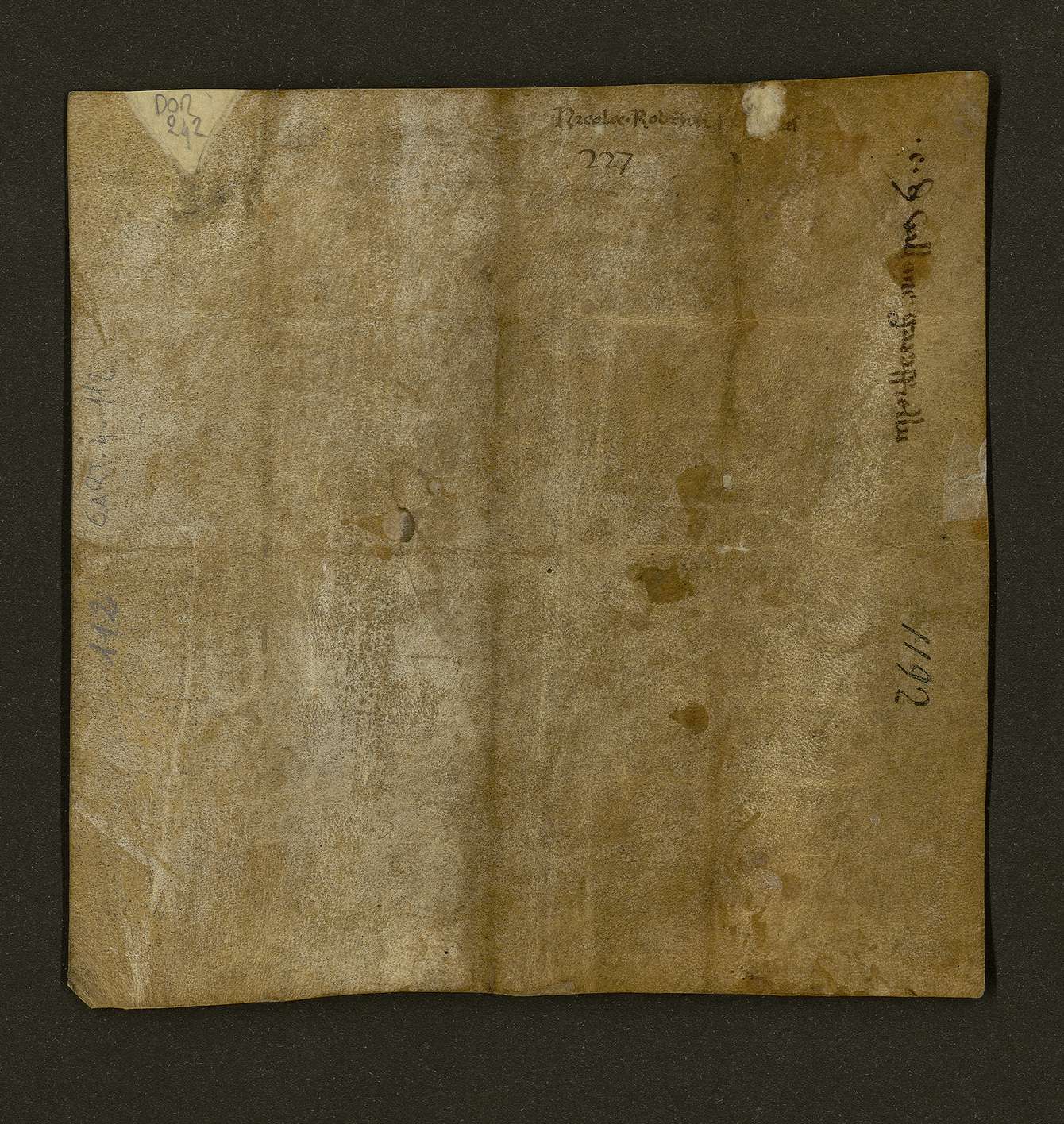 I fratelli Roberto Muto e Nicola vendono ai prelati della chiesa di S. Giacomo degli Eremiti la metà di una terra alla località vallone Garafello di Furano per 15 tarì d’oro. Roberto, notaio.
