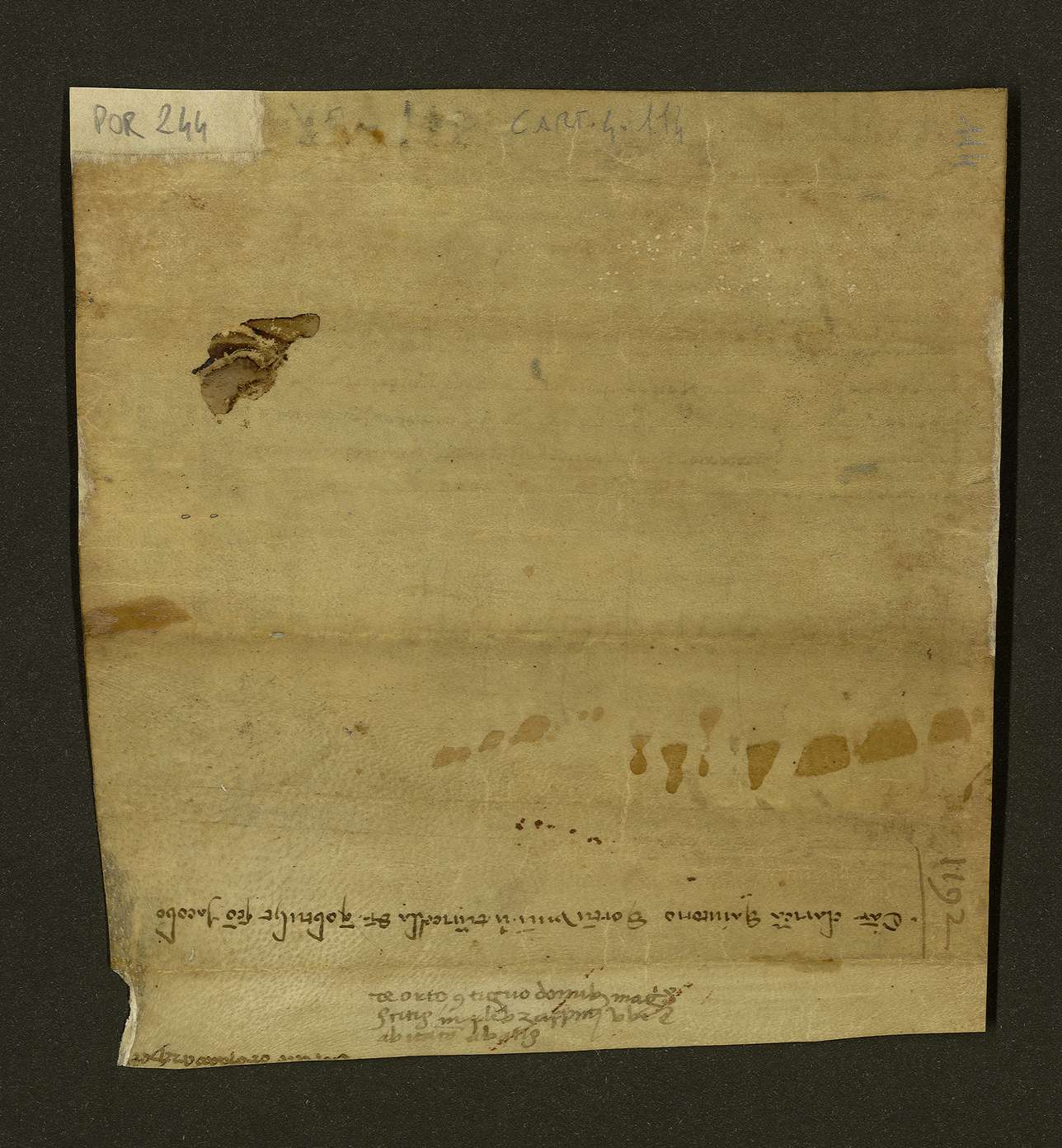 Per la salvezza delle anime dei genitori e della sua e per la remissione dei peccati dei parenti e dei suoi, Clarizia, figlia del fu Aiutorio, offre a Dio e alla chiesa di S. Giacomo degli Eremiti la quarta parte di un orto alla località Torricella nel casale Zappino. Roberto, notaio.