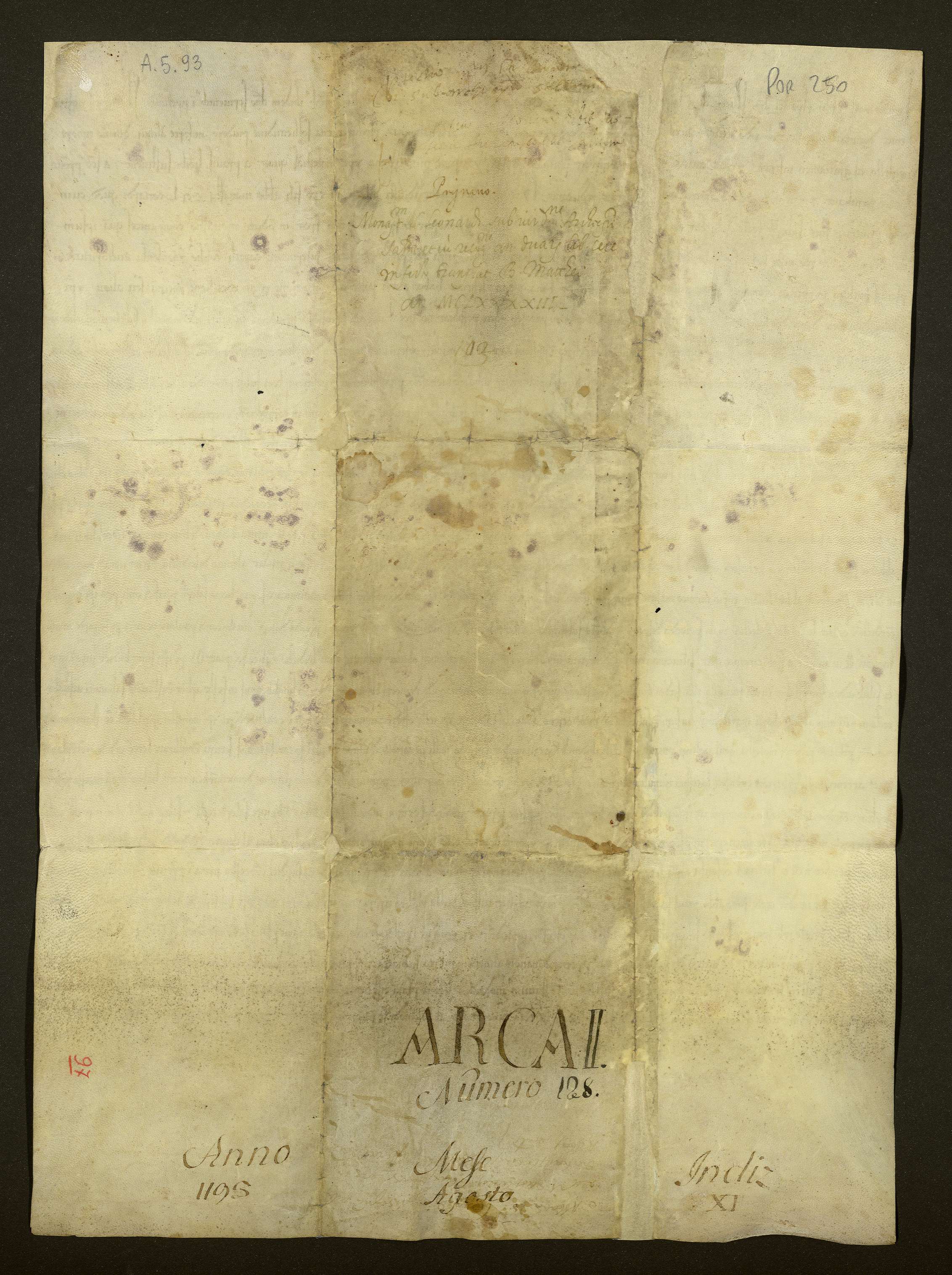 Nicola, arcivescovo di Salerno, prendendo sotto la sua protezione il monastero di S. Leonardo appartenente all'ordine cirstencense, conferma al cenobio i benefici ed i beni posseduti riservando per sé il diritto alla benedizione del nuovo abate e alla sua designazione in caso di mancato accordo fra i monaci entro tre mesi nonché l'entrata di un canone annuo di due ceri di due libbre da versare nel giorno della translazione di Matteo apostolo.
