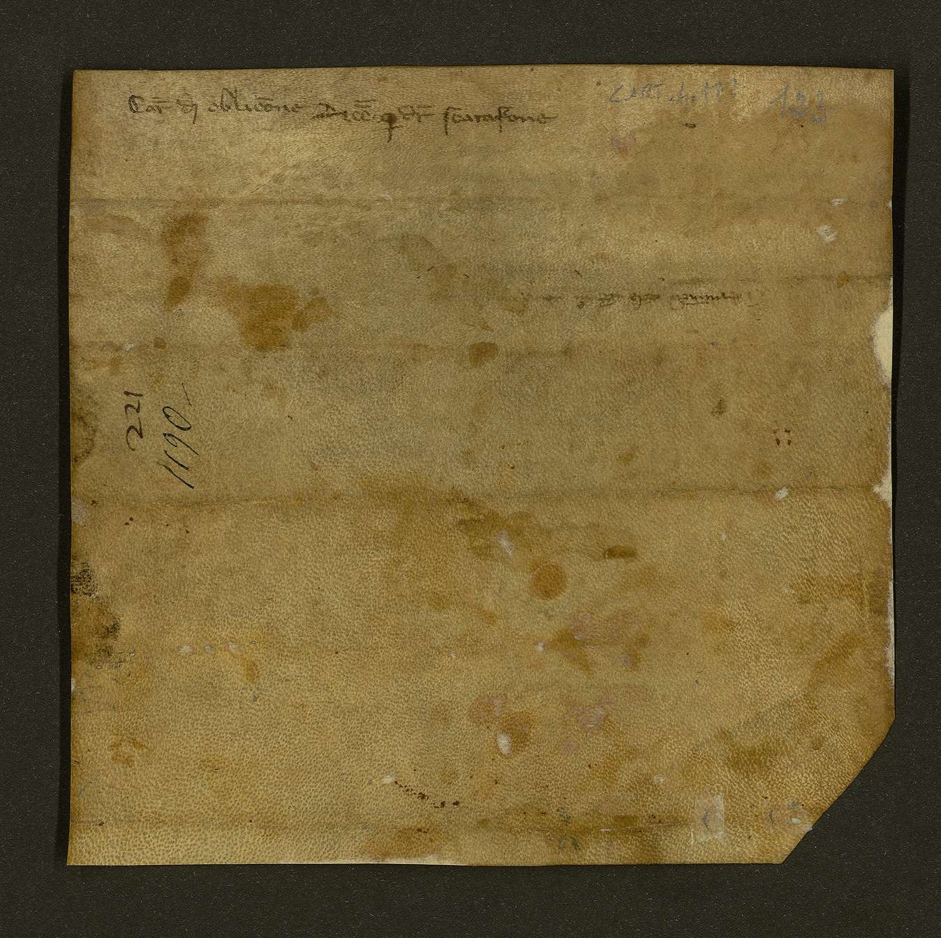 Per amore della beata Maria Madre di Dio e per la salvezza delle anime dei parenti e delle loro, Riccardo Scarafone e la moglie Mabilia offrono a Dio e alla chiesa di S. Erasmo se stessi e tutti i loro beni mobili e immobili siti nelle pertinenze di Campagna, eccetto il letto, i panni e il rame di Mabilia. Gibone, notaio.