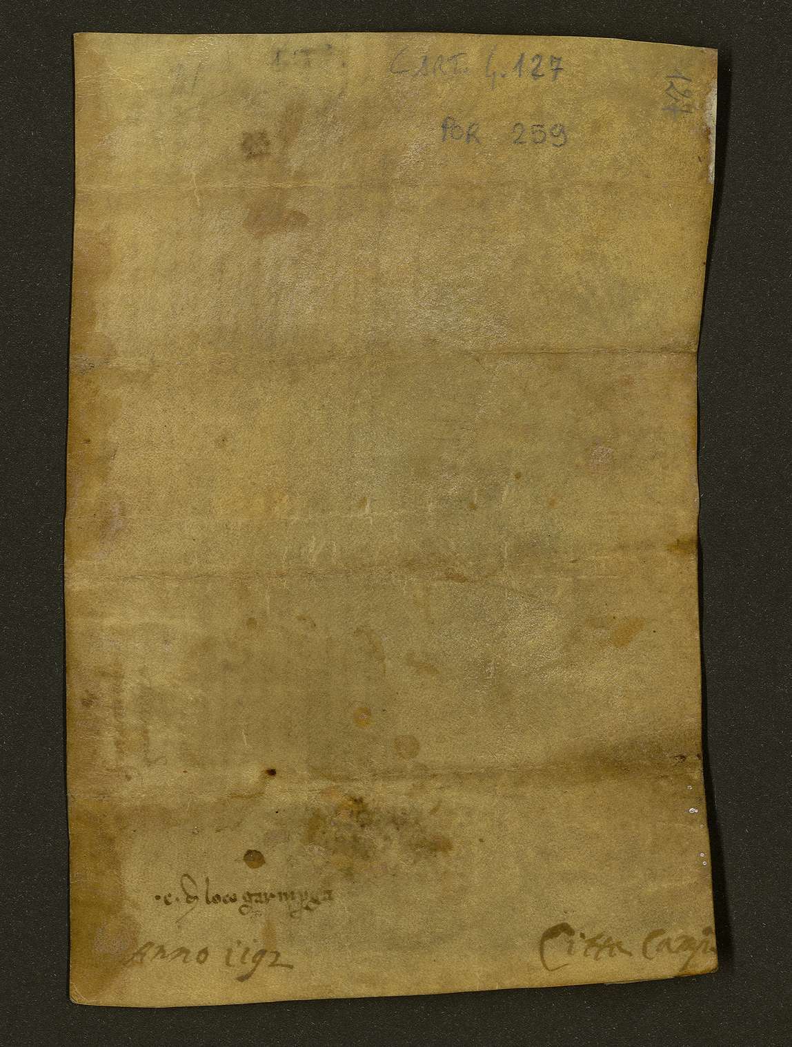 Pietro, figlio del fu Giovanni di Martino, vende a Dolcissima, figlia del fu Pietro di Leone, per 32 tarì d'oro la quarta parte di una terra alla località Guarniperga, dalla quale era già stato sottratto il morgengabe di Mabilia vedova di Amato Tegorese, con l'obbligo di versare la decima del terratico alla Curia. Roberto, notaio.