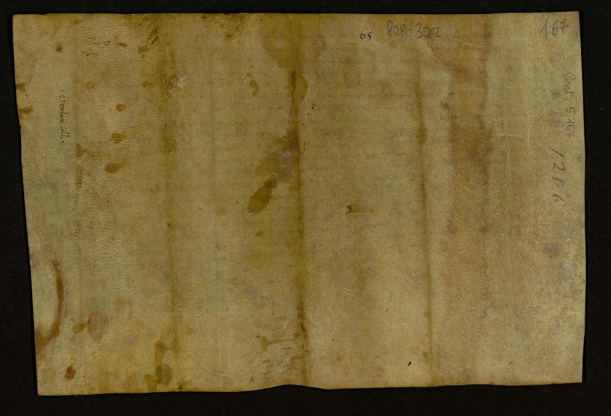 Su richiesta del giudice Pietro, figlio del fu Alfano, viene rogata copia autentica di un istrumento del 1202, gennaio, in cui Vivo e Maria, del fu Giovanni Serviente, vendono al giudice Pietro, del fu Alfano, due terre in località Calli, per 8 tarì di Salerno. Biagio notaio.