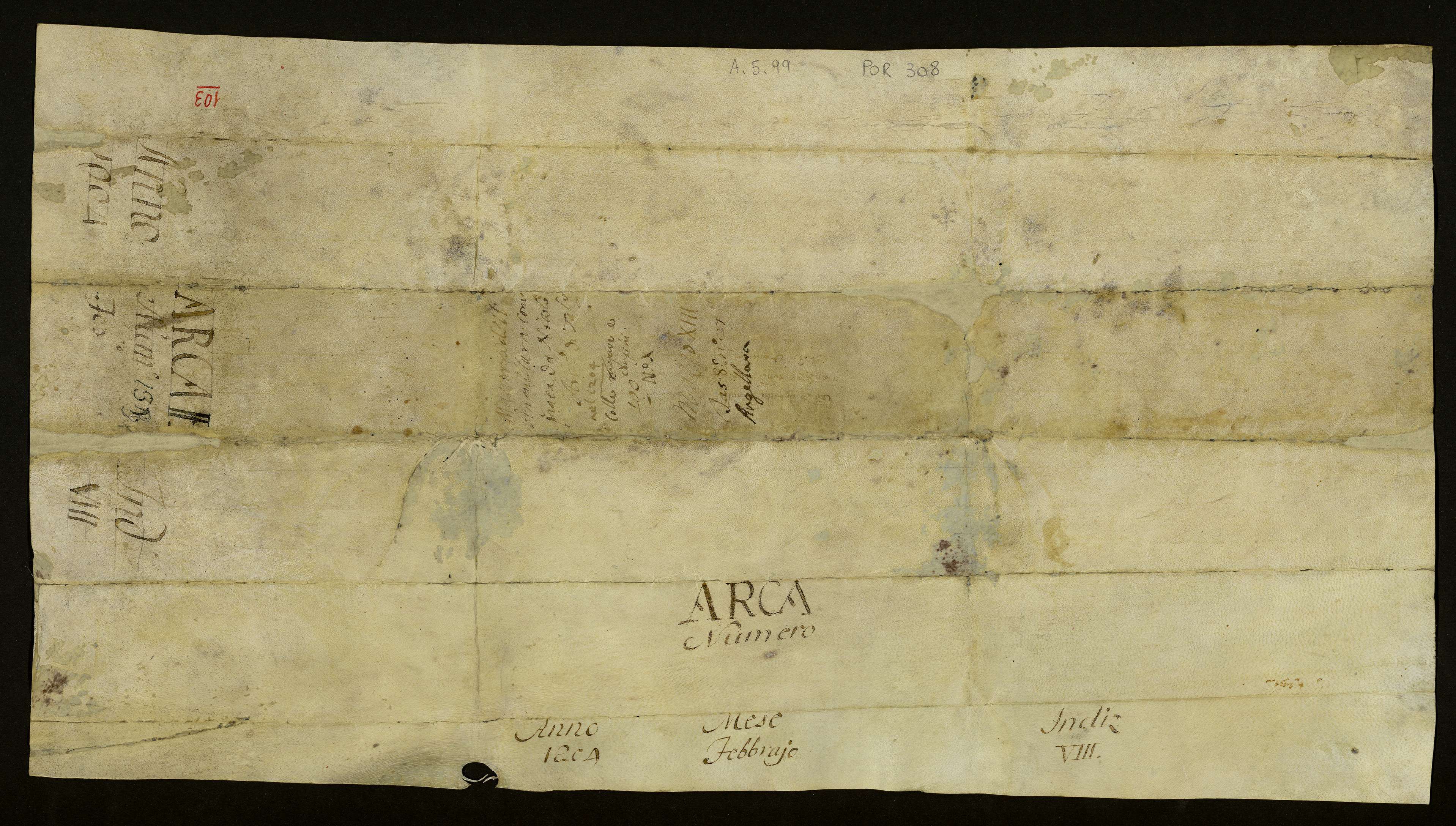Giovanni detto de Senise vende a Guglielmo arciprete e baiulo dell'arcivescovo Nicola, una terra arbustata, fuori Salerno, in contrada Angellara. Giovanni notaio