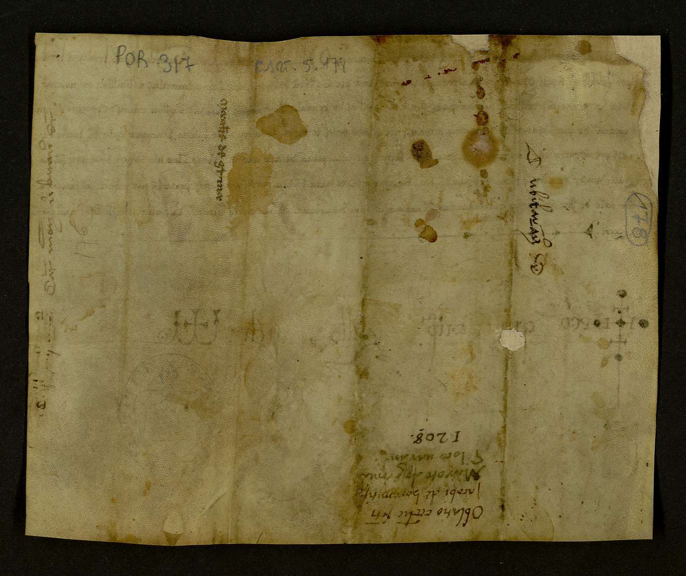 Ruggiero Cacciottolo e Guglielmo di Icta testimoniano che Matteo di Grimula, figlio naturale del defunto milite Guglielmo di Petrone, sul letto di morte aveva lasciato alla chiesa di S. Giacomo degli Eremiti un pezzo di terra alla località Piani di Varano. Roberto, notaio.