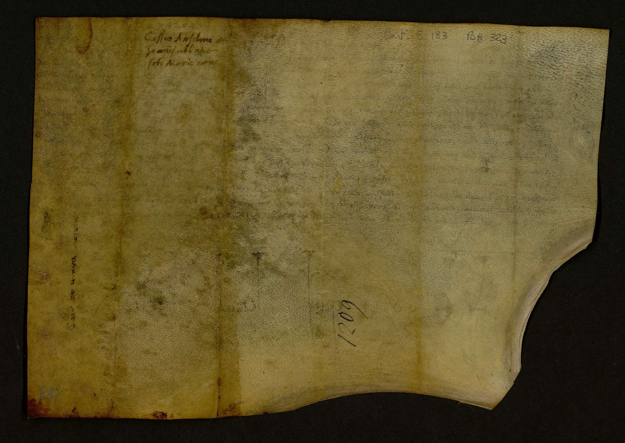 Per porre fine alla questione sorta con Roberto, abate della chiesa di S. Erasmo, per i beni immobili appartenuti ad Evo di Grusa e posseduti ora da Anselmo ed il sororius Giovanni, questi cedono al predetto abate una terra con vigna alla località Moreno. Pietro, notaio.