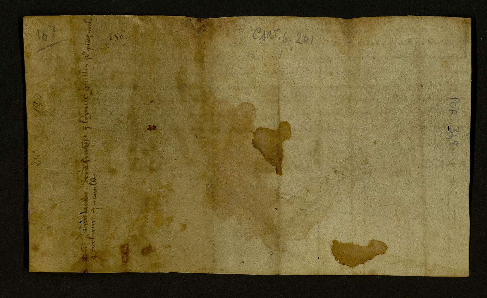 Il prete Ruggiero Gubeone abate della chiesa di S. Andrea, Pietro di Dardana, Guglielmo Frunzo, Convente, Giovanni di Dardana e Roberto Scarano testimoniano che Guglielmo, figlio del fu Nicola di Maraldo, sul letto di morte con il consenso della madre Marotta, alla quale era stato riservato l'usufrutto vita natural durante, aveva lasciato alla chiesa di S. Giacomo degli Eremiti la metà di una terra alberata alla località Furano. Roberto notaio.