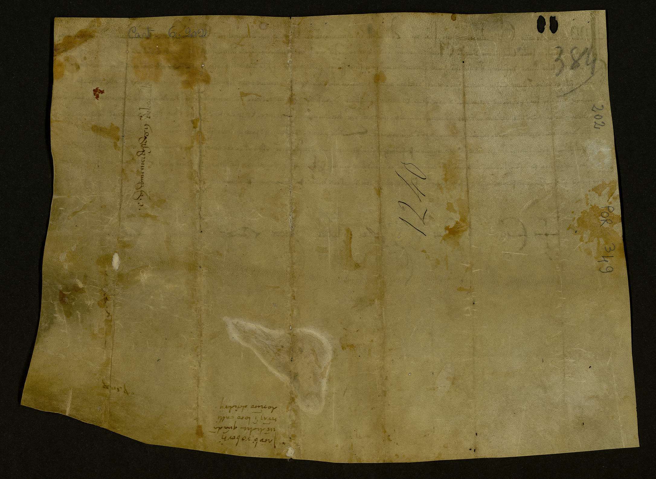 Giacomo, figlio del fu Roberto del casale Monte, vende a Domenico, figlio del fu Desiderio, la sua parte, pervenutagli dalla defunta moglie Gaita, di due terre alla località Calli e di una terra alla località Magisi per 28 tarì di Salerno. Pietro notaio.
