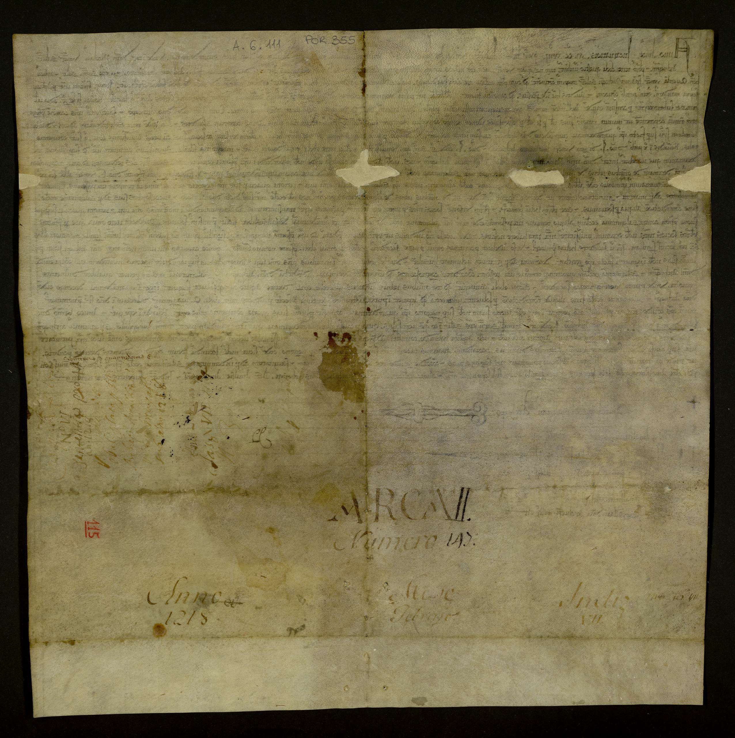 Atto, con il quale Giovanni, arcivescovo di Amalfi, incaricato da Onorio III di decidere la lite tra l'arcivescovo Nicola e i preti di Eboli, i quali si rifiutano di pagargli la quarta delle decime, dichiara che i preti di Eboli, riconoscendo il loro torto, rinunziano al giudizio e si obbligano a pagare la quarta delle decime. Corrado, notaio.