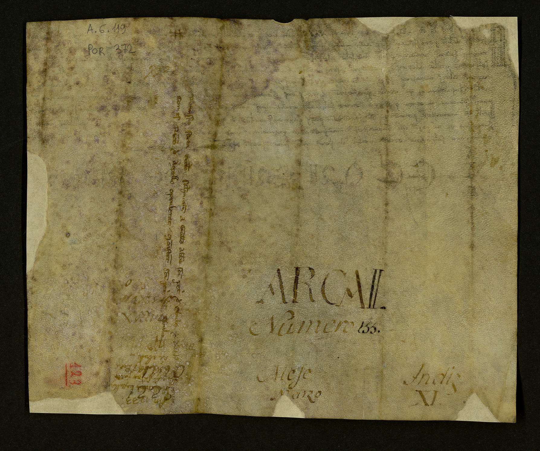 Atto fatto da Guglielmo Abate di S. Pietro di Eboli, col quale egli rimette alla giurisdizione della chiesa salernitana i vassalli Giovanni Marchisio e Marraldello Porcario, sottoposti un tempo alla sua chiesa dal Conte Riccardo d'Aiello. Pietro, notaio