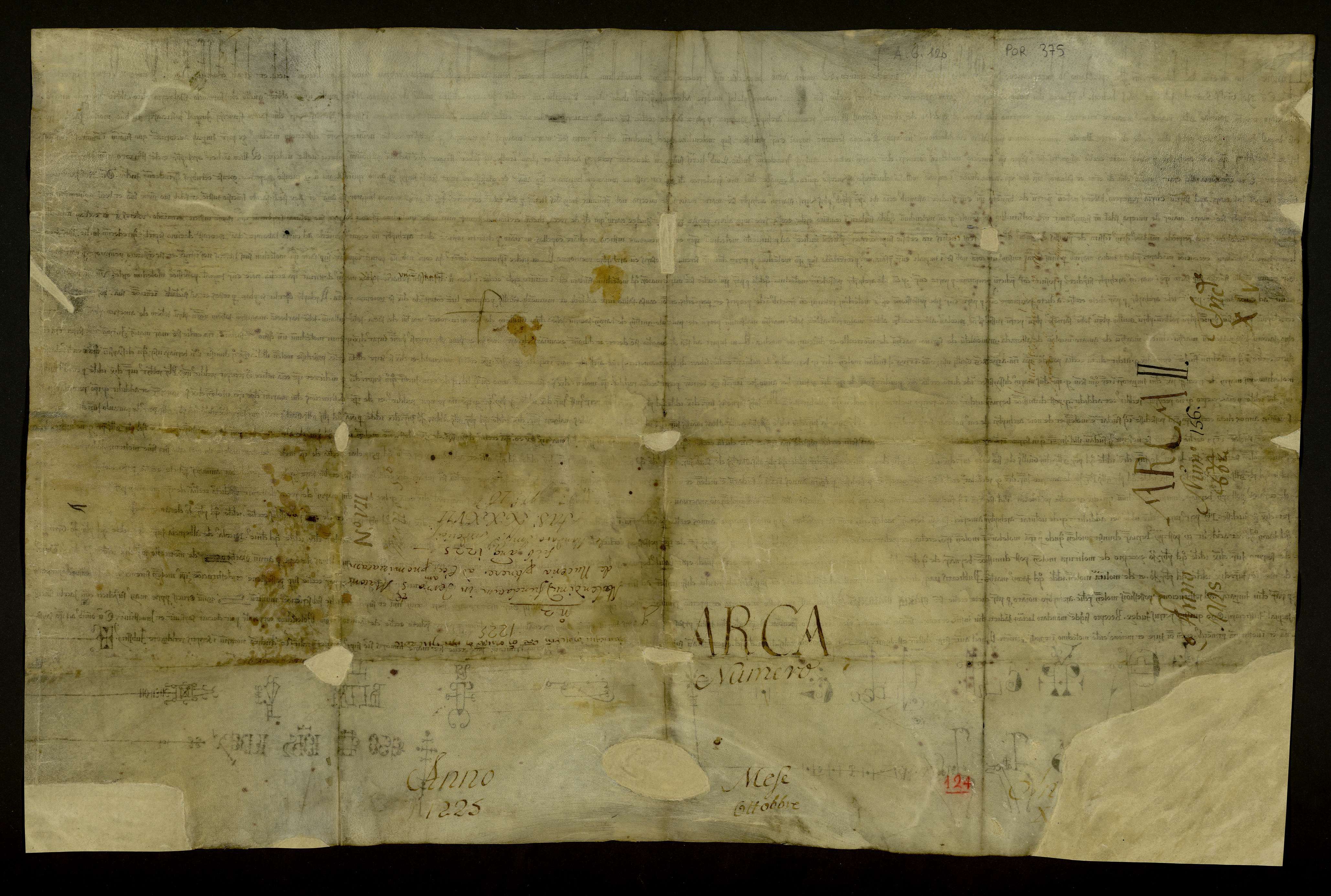 Restituzione di un mulino, sito in contrada S. Renato, di proprietà della chiesa di S.Maria Maggiore di Nocera, in virtù di lettere imperiali di Federico II a Giacomo Francisio Sicile, Giustiziere Imperiale, innanzi al nobile Guglielmo de Lepore, strategota di Nocera. Andrea, notaio