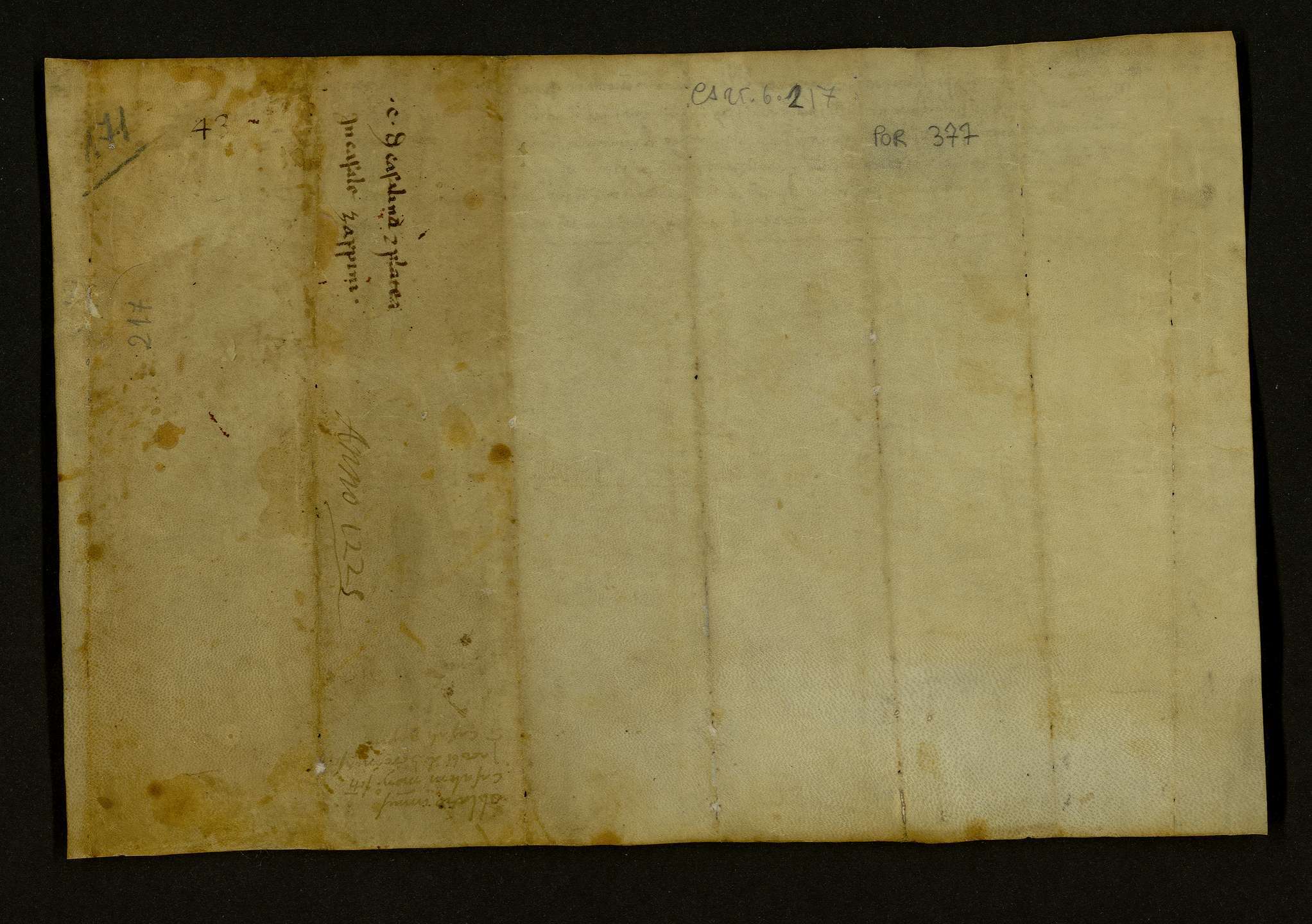 Per la remissione dei peccati e per la salvezza delle anime dei parenti e della sua, il giudice Riccardo figlio del defunto giudice Paride, con il consenso del figlio Ruggiero giudice, offre a Dio ed al monastero di S. Giacomo degli Eremiti nelle mani dell'abate Ruggiero un casalino con platee nel casale Zappino, confinante con i beni della chiesa del S. Salvatore. Guglielmo giudice.