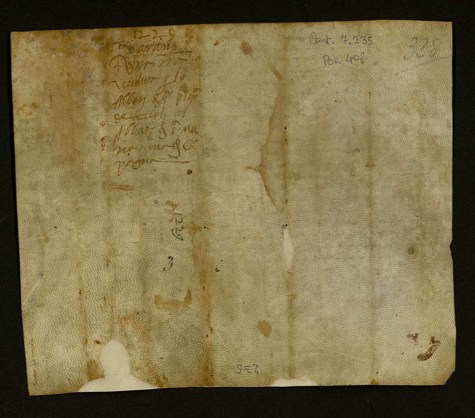 Avendo già venduto quasi tutti gli animali e non essendo riuscito a saldare i debiti contratti, esibite le lettere del magister Bernardo canonico e procuratore della chiesa salernitana con l'autorizzazione a vendere alcune proprietà nel tenimento di Campagna sino al valore di 10 once d'oro, con il consenso dei confratelli Guglielmo abate del monastero di S. Pietro di Eboli vende a Giovanni, figlio del fu Giovanni Morrese, per un'oncia e 14 tarì d'oro una terra alberata alla località Varano di Ariano, confinante con beni della chiesa di S. Angelo di Montenero e degli eredi del defunto milite Guglielmo di Petrone, con l'obbligo di versare la decima del terratico alla Curia. Ruggiero, notaio.