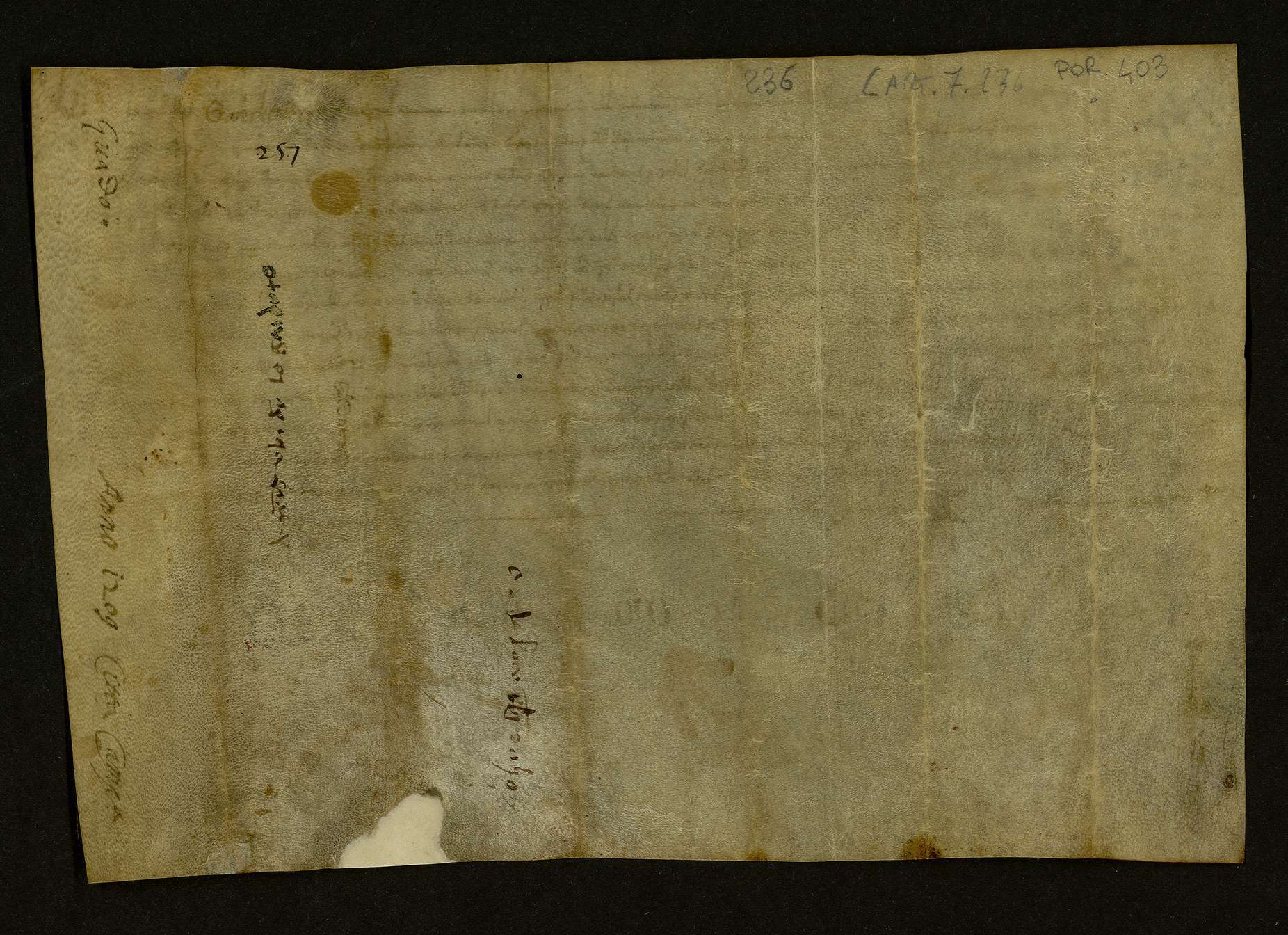 Con il consenso del fratello Ruggiero, Giovanni figlio del fu Palermo e la madre Novissima, Clemente figlio dei fu Giovanni Palmenterio e la madre Matina vendono a Giovanni, figlio del fu Giovanni Morrese, due pezzi di terra alla località Gaidota di Ariano per mezza oncia d'oro, con l'obbligo di versare la decima del terratico alla Curia. Ruggiero notaio.