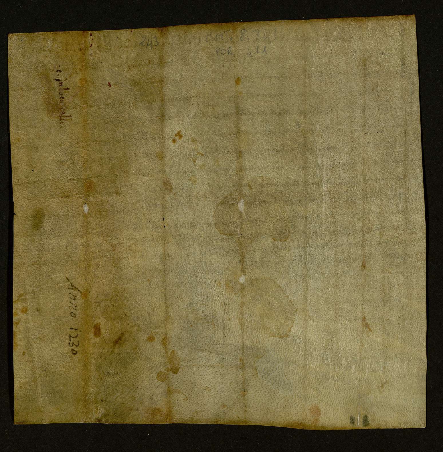 Iacounus Aiutorio, figlio del fu Andrea di Montano, vende al prete Filippo, figlio del fu Marconito, una terra laboratoria alla località Calli per un’oncia ed un quarto d’oro al peso di Salerno con la condizione che la presente vendita sarebbe stata nulla qualora il venditore o i suoi eredi fossero riusciti a restituire entro la metà del gennaio 1231 la somma percepita, altrimenti sarebbe stata valida a tutti gli effetti e in tal caso il venditore avrebbe dovuto ricevere un’altra oncia e un quarto d’oro. Pietro, notaio.