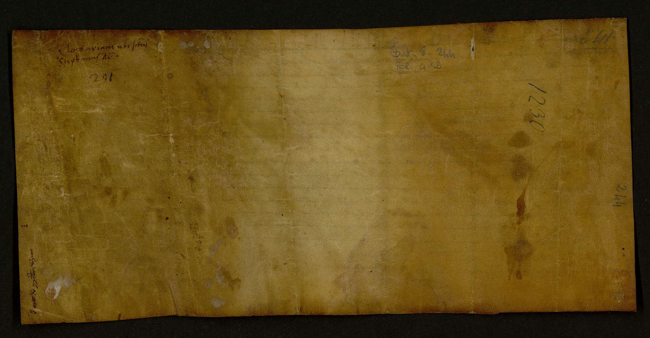 Con il consenso della moglie Altacita, Pietro figlio del fu Pietro Labbruto e le sorelle Medania Solessore e Fortunata vendono a Giovanni e a Roberto, figli del fu Sico di Mario di Gaita, per 2 once meno un quarto d’oro la terza parte di tre terre alle località S. Stefano di Ariano, Pariti e Petrolla, di cui la seconda confinante coi beni della chiesa di S. Damiano e la terza col fiume Sele, la terza parte di un casalino nel casale Zappino e la terza parte di un castagneto alla località Apete di Potentione, con l’obbligo di versare la decima del terratico alla Curia per la terra alla località Petrolla. Ruggiero, notaio.