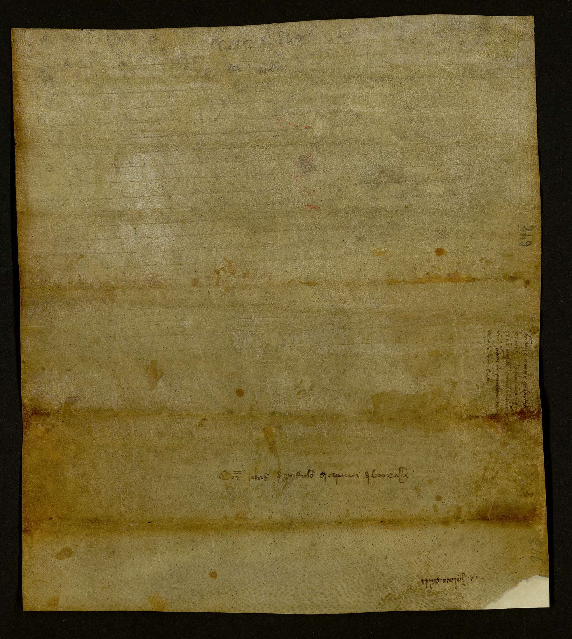 Permutata una terra con Guglielmo abate di S. Pietro, Giovanni figlio del fu Parisio e il genero Bartolomeo figlio del fu Giovanni di Pasquiana, quest’ultimo con il consenso della moglie Saraffia, vendono a Giovanni di Guido della terra di Campagna per un’oncia e cinque ottavi d’oro al peso generale del regno una terra laboratoria alla località Calli, confinante con il torrente Ausella e i beni dello stato. Giovanni, pubblico notaio.