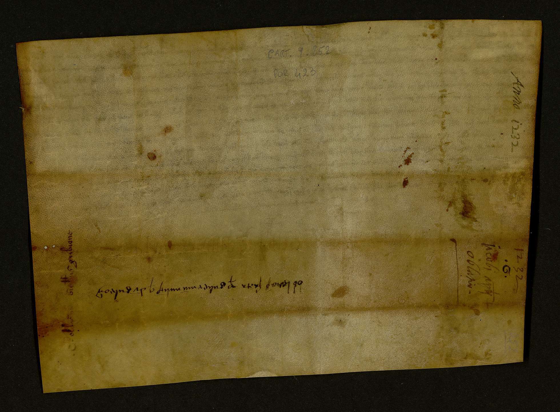 Su richiesta di Tommaso monaco del monastero degli Eremiti viene rogata copia autentica di un istrumento dell'aprile 1192 per eliminare il nome e gli anni del regno (o l'espressione temporibus) di Tancredi re. Il milite Guglielmo Gubeone figlio del fu Roberto offre a Dio e alla chiesa di S. Giacomo degli Eremiti tutti i suoi beni mobili e immobili, eccetto una vigna e e alcuni pezzi di terra, riservandosene l'usufrutto vita natural durante. Dall'oblazione vengono esclusi il denaro, i panni ed il morgengabe della moglie Maralda. Roberto, notaio.