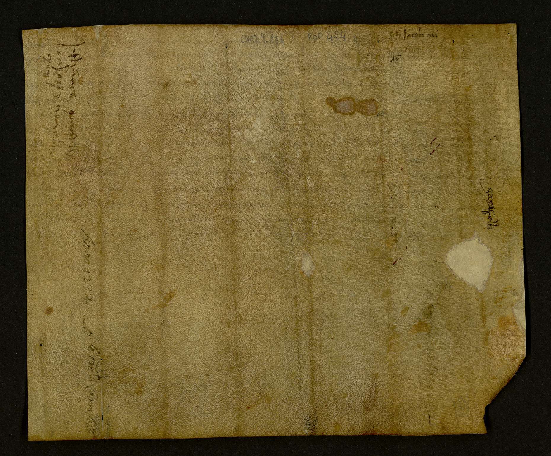 Su richiesta di Tommaso monaco del monastero di S. Giacomo degli Eremiti viene rogata copia autentica di un istrumento dell'aprile 1192 per eliminare il nome e gli anni del regno (o l'espressione temporibus) di Tancredi re. Per la salvezza della sua anima, Gemma vedova di Pietro di Miranda offre a Dio ed alla chiesa di S. Giacomo degli Eremiti la metà di un pezzo di terra alla località vallone Garafello. Roberto, notaio.