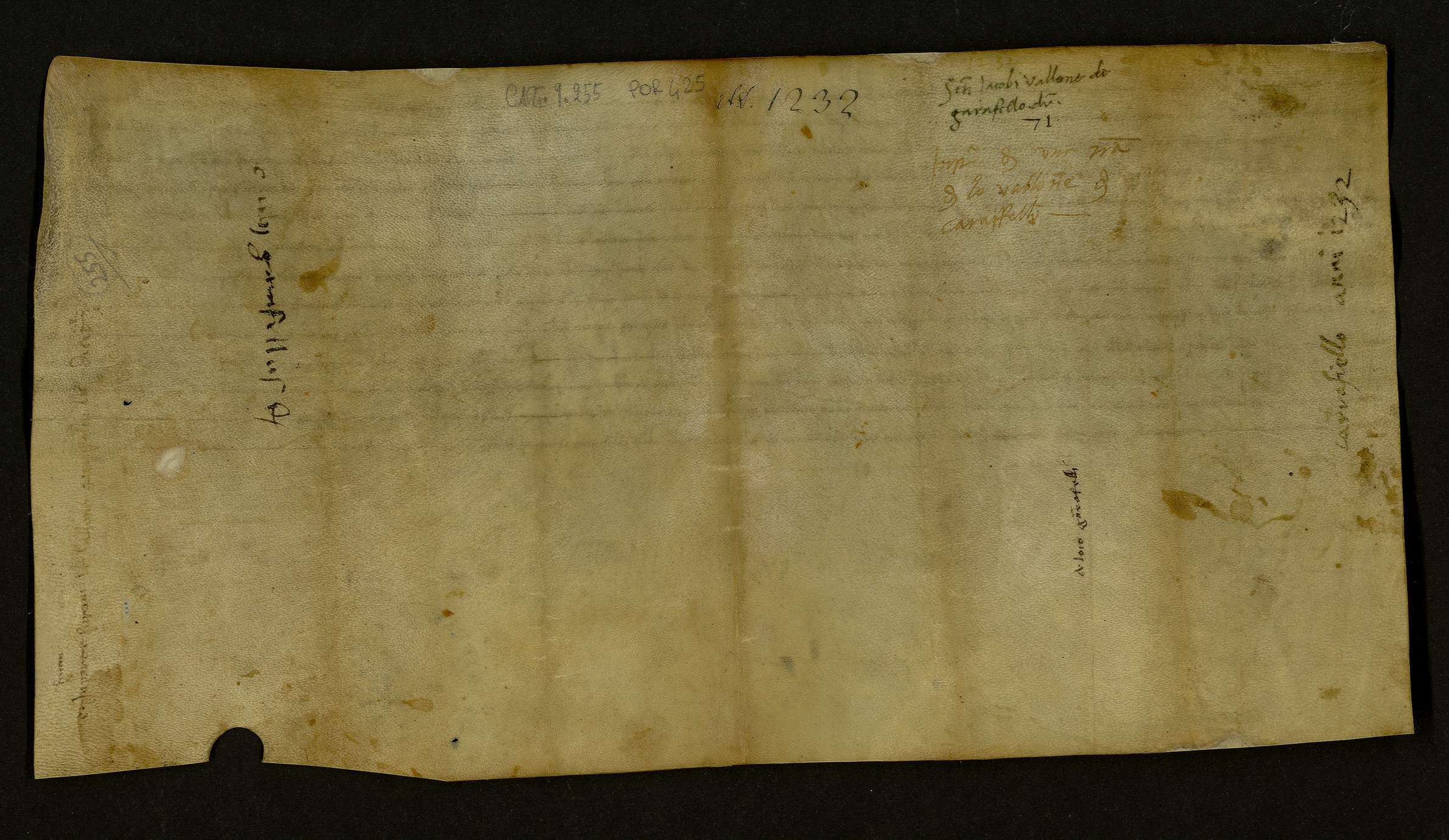 Su richiesta di Tommaso monaco del monastero di S. Giacomo degli Eremiti viene rogata copia autentica di un istrumento del maggio 1192 per eliminare il nome e gli anni del regno (o l'espressione temporibus) di Tancredi re. I fratelli Roberto Muto e Nicola vendono ai prelati della chiesa di S. Giacomo degli Eremiti la metà di una terra alla località vallone Garafello di Furano per 15 tarì d'oro. Roberto, notaio.