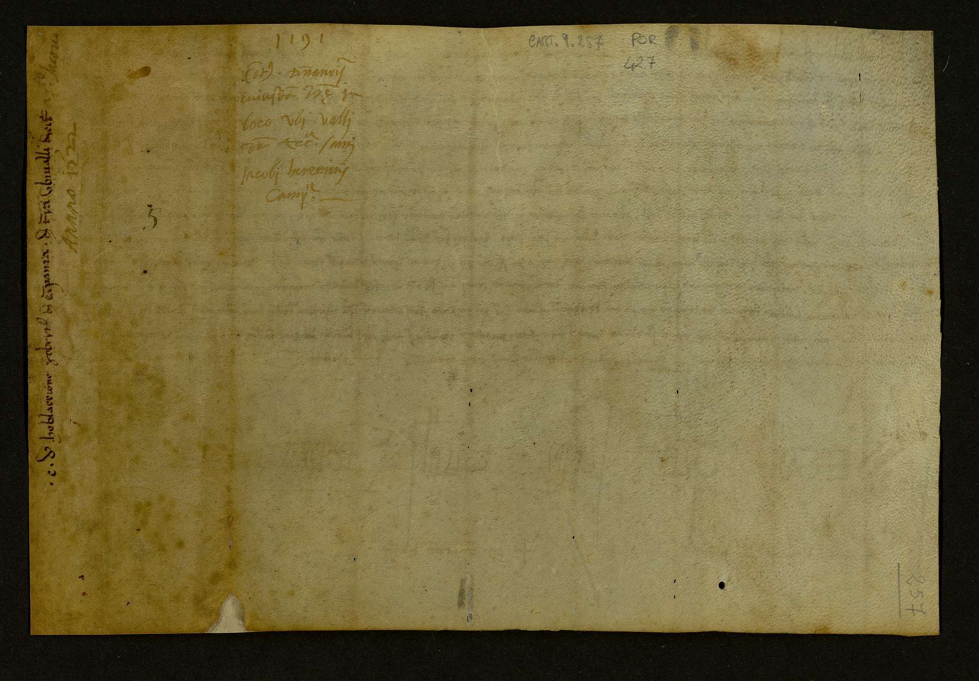Su richiesta di Tommaso monaco del monastero di S. Giacomo degli Eremiti viene rogata copia autentica di un istrumento del gennaio 1193 per eliminare il nome e gli anni del regno (o l'espressione temporibus) di Tancredi re. Per la salvezza delle anime dei genitori e della sua e per la remissione dei peccati, Roberto di Campanina offre a Dio ed alla chiesa di S. Giacomo degli Eremiti una terra alla località Valle di Furano. Roberto, notaio.
