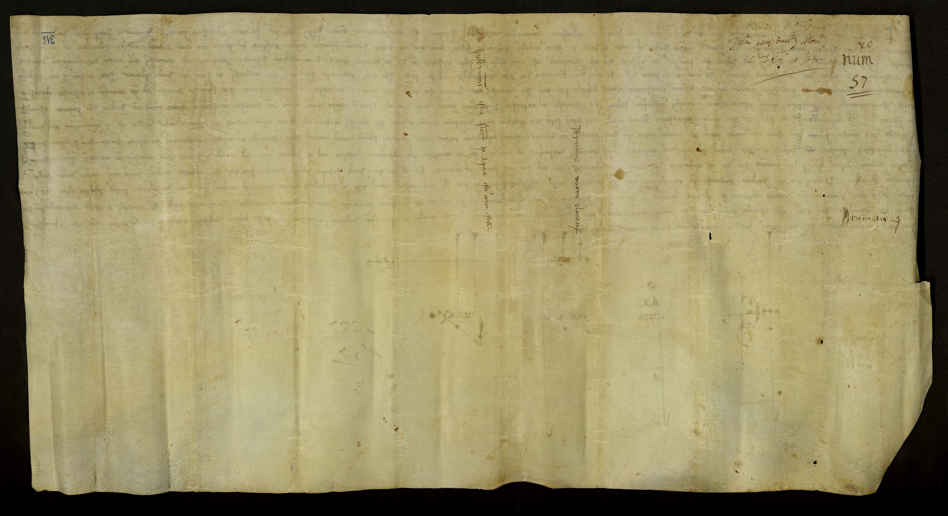 Innanzi al giudice Matteo e ai testimoni Matteo Guarna e Pietro Cavaselice, Giacomo, detto Ursone, concede a Gerardo di Ursone, procuratore del monastero di S. Maria dell’ordine di S. Damiano, costruito fuori Salerno in contrada a lu ponte, di cui è badessa Francesca, il diritto di passaggio di un acquedotto, per raccogliere le acque di risulta del monastero, attraverso un terreno sul quale vi era la chiesa di S. Onofrio, per mezza oncia d’oro. Tommaso, notaio.