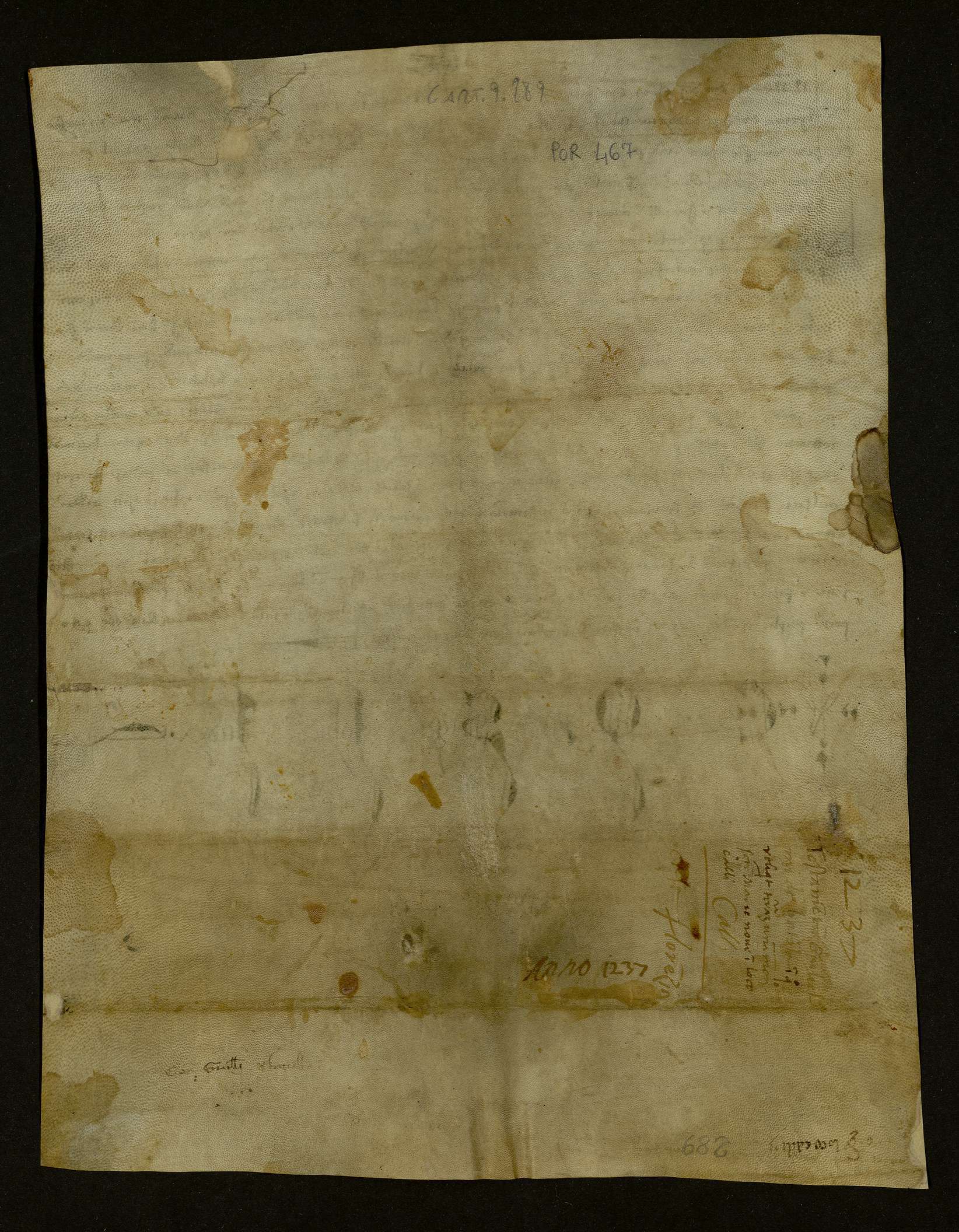 Accompagnati da Pellegrino monaco della chiesa di S. Maria Nova, il prete Aiutorio, Pietro Guerra e Giovanni di Perretta testimoniano che Guglielmo di Vatolla sul letto di morte, per la salvezza della sua anima e con il consenso della moglie Carasia, aveva lasciato alla predetta chiesa la sua parte pro indiviso di due piccole terre alla località Calli possedute in comune con Marco di Perfinia e Giovanni Guaragna. Pietro Pasquiana, notaio.