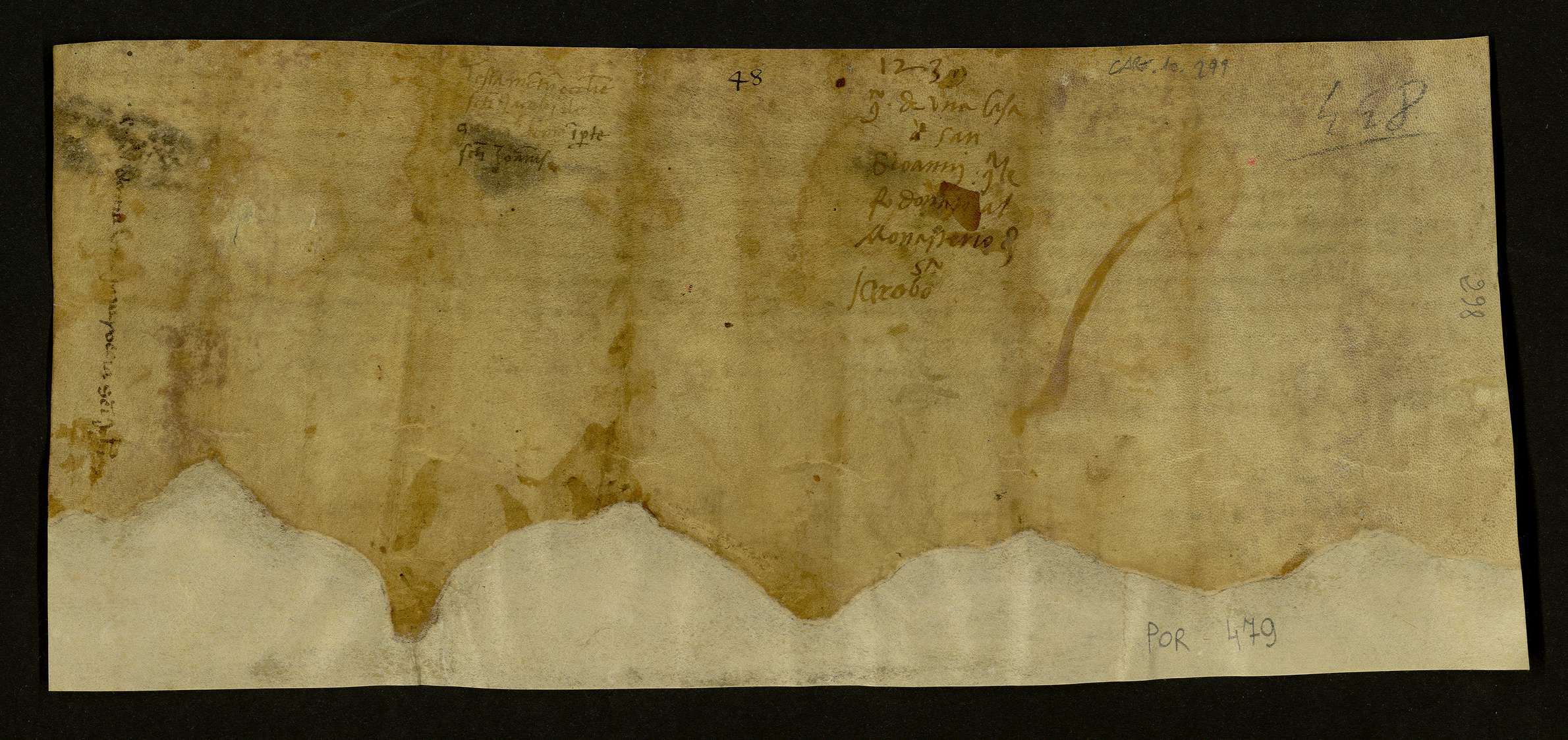 Per la salvezza delle anime dei parenti e della sua, Magalda vedova di Simone Fattore, facendo testamento sul letto di morte, lascia al monastero di S. Giacomo degli Eremiti una casa solariata nella parrocchia di S. Giovanni, riservandone l’usufrutto vita natural durante alla sorella Giulia. Silvestro, notaio.