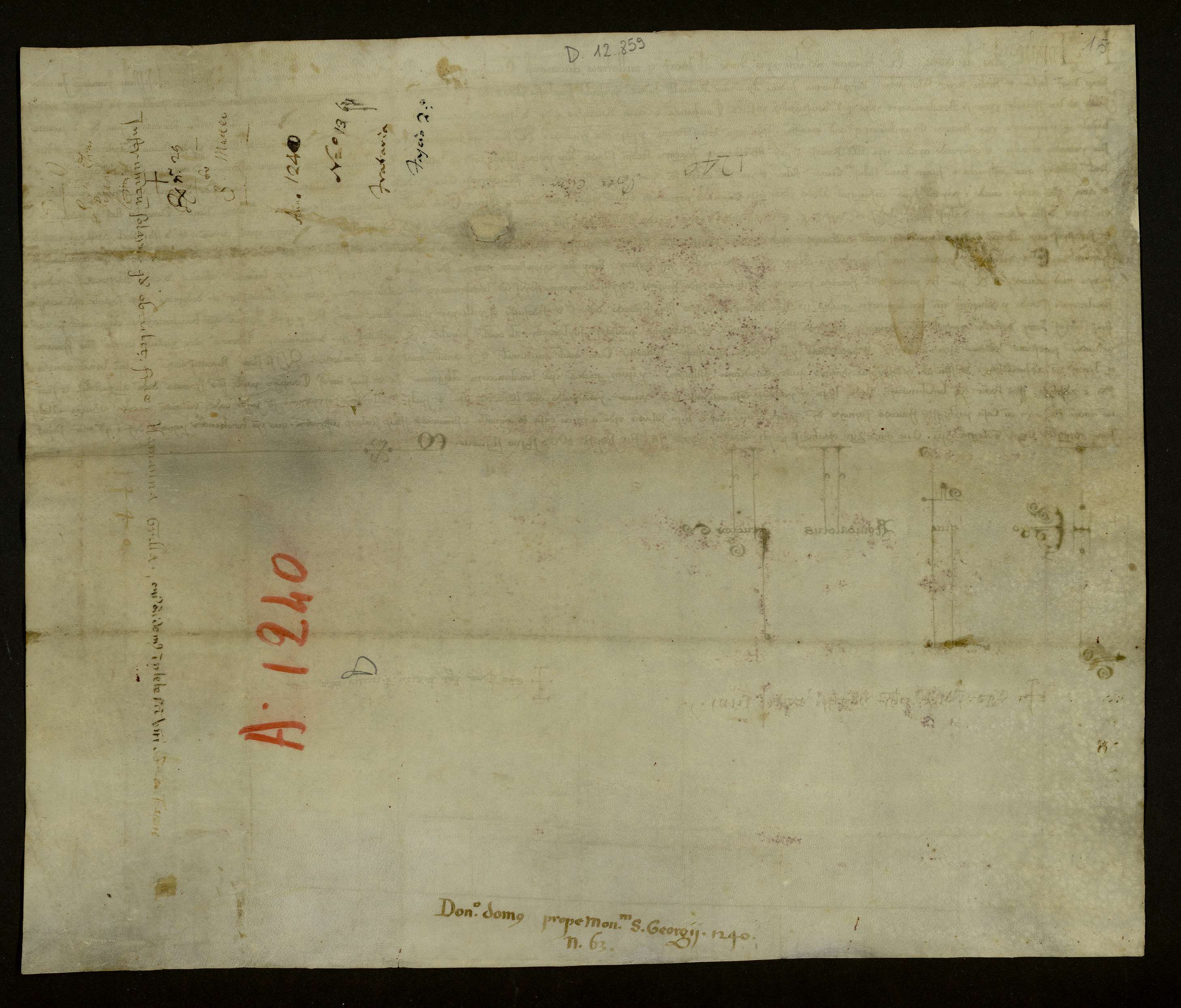 Bonaventura figlia del fu Bonsignori di Pisa dona all'Arcivescovado salernitano nella persona di Riccardo di Limogia clerico e suddiacono della Cattedrale,una porzione di casa, in Salerno, sita nelle vicinanze della chiesa di S.Vito de Scutis, nei pressi del Monastero di S.Giorgio. Matteo, notaio
