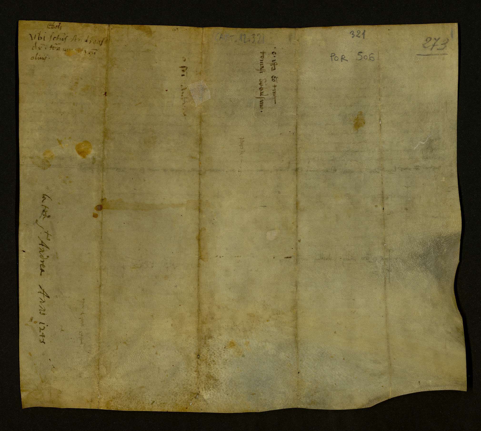 Con il consenso della moglie donna Elena, don Enrico figlio del defunto don Daiterio Teutonico vende a Pietro di Occhio per 3 once d’oro al peso generale del regno una terra con vigna olivi e alberi fruttiferi alla località S. Andrea, confinante con una terra laboratoria al monastero di S. Pietro. Roberto Malfrido, notaio.