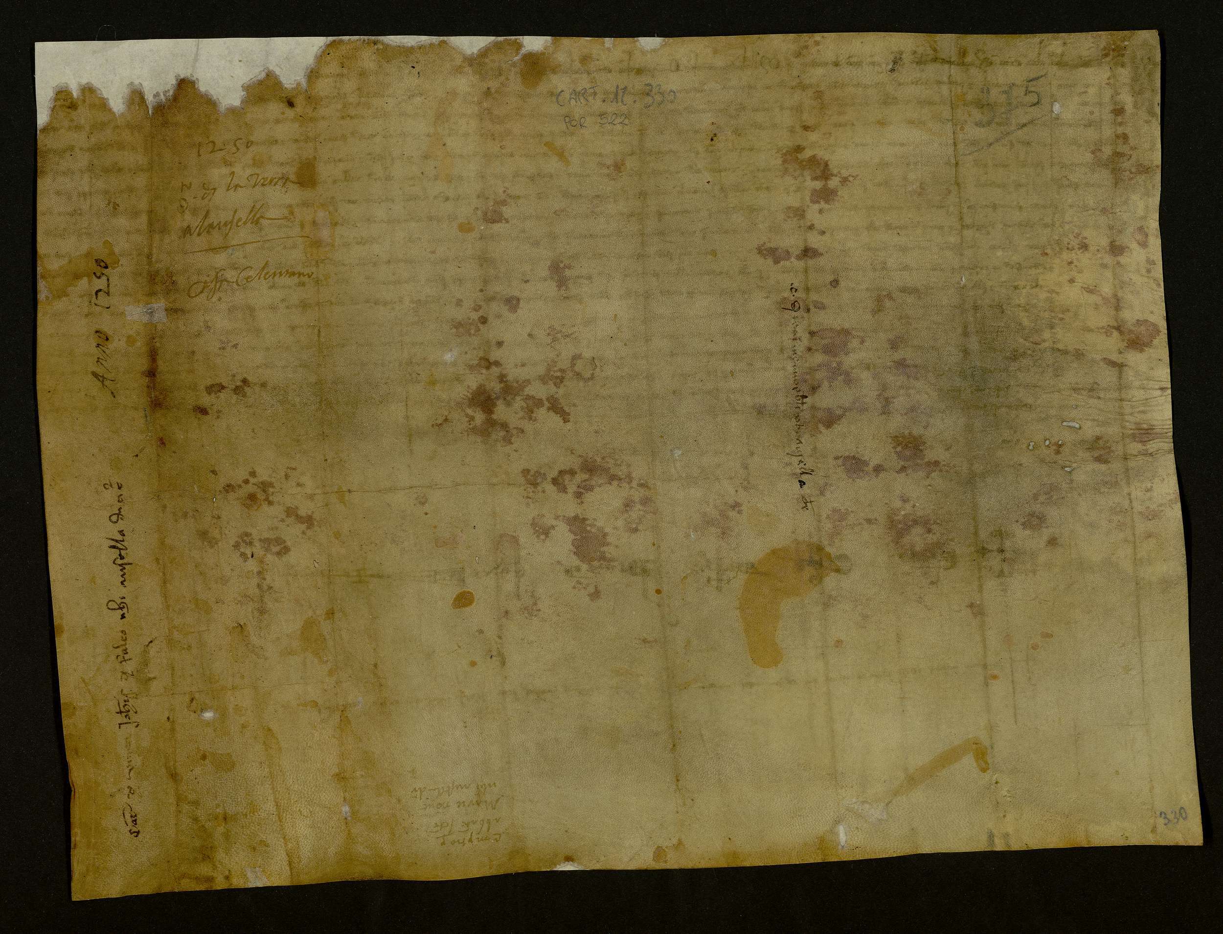 Con il consenso del figlio Filippo e delle mogli [sic] Sibilia ed Agostina, Giovanni di Falco dà una terra con vigna, olivi e alberi fruttiferi alla località Ausella, confinante con il torrente omonimo, a Ruggiero, una volta priore del monastero di Materdomini di Roccapiemonte ed ora abate del monastero di S. Maria Nova delle pertinenze di Eboli, il quale, autorizzato dalle lettere di Cesario arcivescovo di Salerno date ad Amalfi, dà in cambio una terra con vigna ed olivi alla località S. Silvestro, un'oncia e 18 tarì d'oro al peso generale. Roberto Malfrido, notaio.