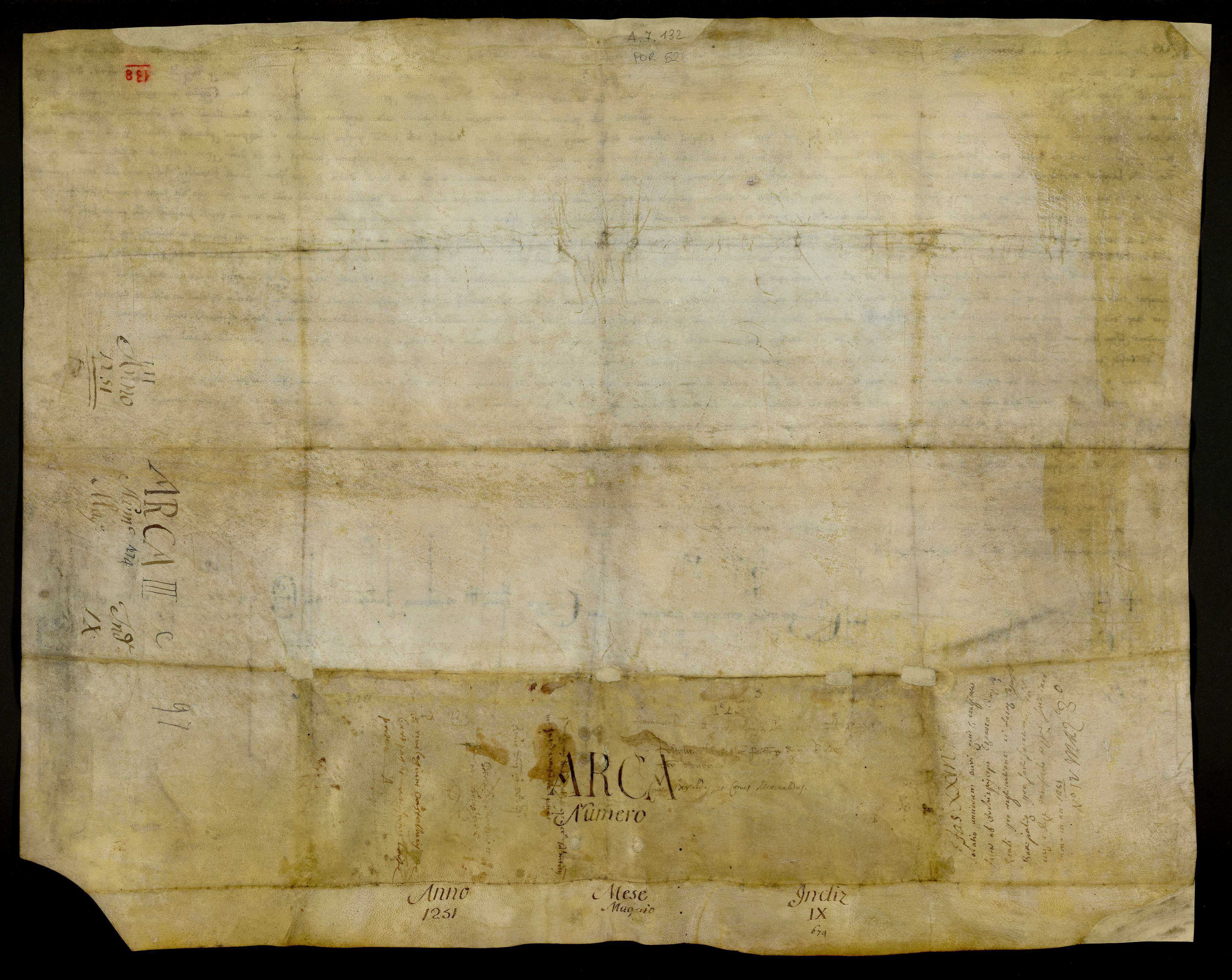 Lettere di Bertoldo Marchese di Hohemburg, Capitano in Salerno, con le quali, in esecuzione del testamento dell' Imperatore Federico, e ad istanza dell'Arcivescovo Cesario, si ordina di restituire alla Chiesa Salernitana tutta la zona con annesso edificio, chiamata Battipaglia con il castello erettovi, detto Castelluccio, invasa, in tempo di ostilità, dal Conte Marcoaldo. Stefano, notaio