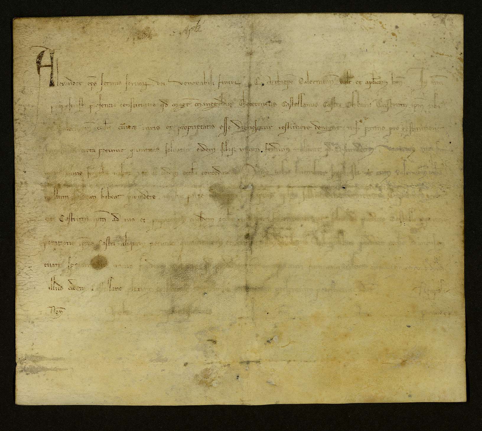 Breve di Alessandro IV diretto all'Arcivescovo di Salerno con cui gli concede di poter infeudare il Castello d'Olevano.