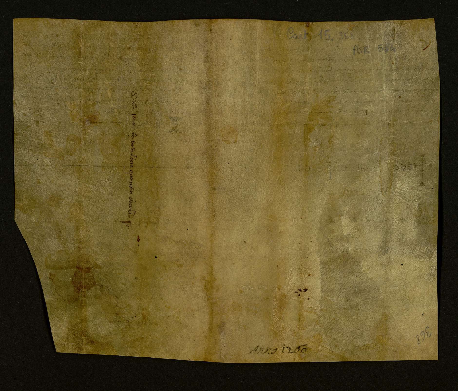 Per la salvezza delle loro anime e per la remissione dei loro peccati, Santoro e la madre Maria, vedova di Giovanni di Dulcera e assistita dal predetto figlio in qualità di mundoaldo, offrono al monastero di S. Maria Nova di Calli, nelle mani dell’abate Ruggiero, se stessi e tutti i loro beni mobili e immobili siti nelle pertinenze di Campagna, a eccezione di una terra con vigna e olivi alla località Troncito sulla quale Maria si riserva l’usufrutto vita natural durante. Ruggiero, notaio.