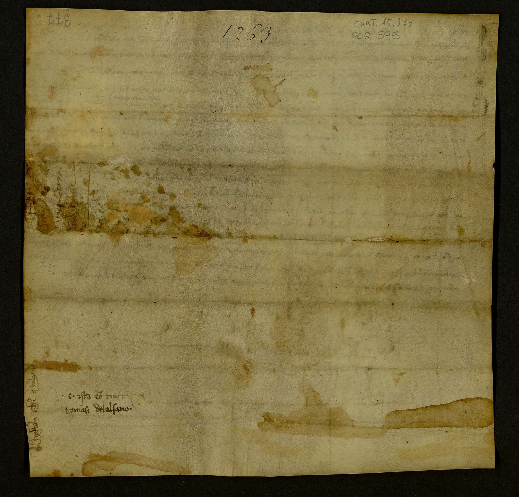 Per dotare la figlia Perna promessa in moglie a Giovanni di Castellucia, Vigilia di Occhio vedova di Pietro Occhiocomune, assistita dal secondo marito Mauro in qualità di mundoaldo, con i figli Perna, Gualtiero, Giuditta e Giacomo vende a Tommaso di Balzano una terra con vigna, olivi e alberi da frutta alla località S. Andrea per 3 once d’oro al peso generale del regno. Pietro Pasquiana, notaio.
