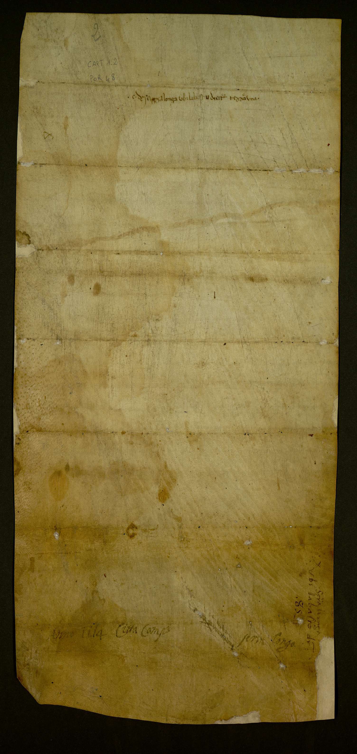 Sichelmanno, figlio del defunto prete Specio, ed i figli Giovanni ed Aronzio, vendono a Giovanni, figlio del fu Marco, per 18 tarì d’oro una terra nei confini della città di Campagna, in località Olivastro di Serra Lunga, adiacente a beni della chiesa di S. Maria. Cenammo, diacono e notaio.