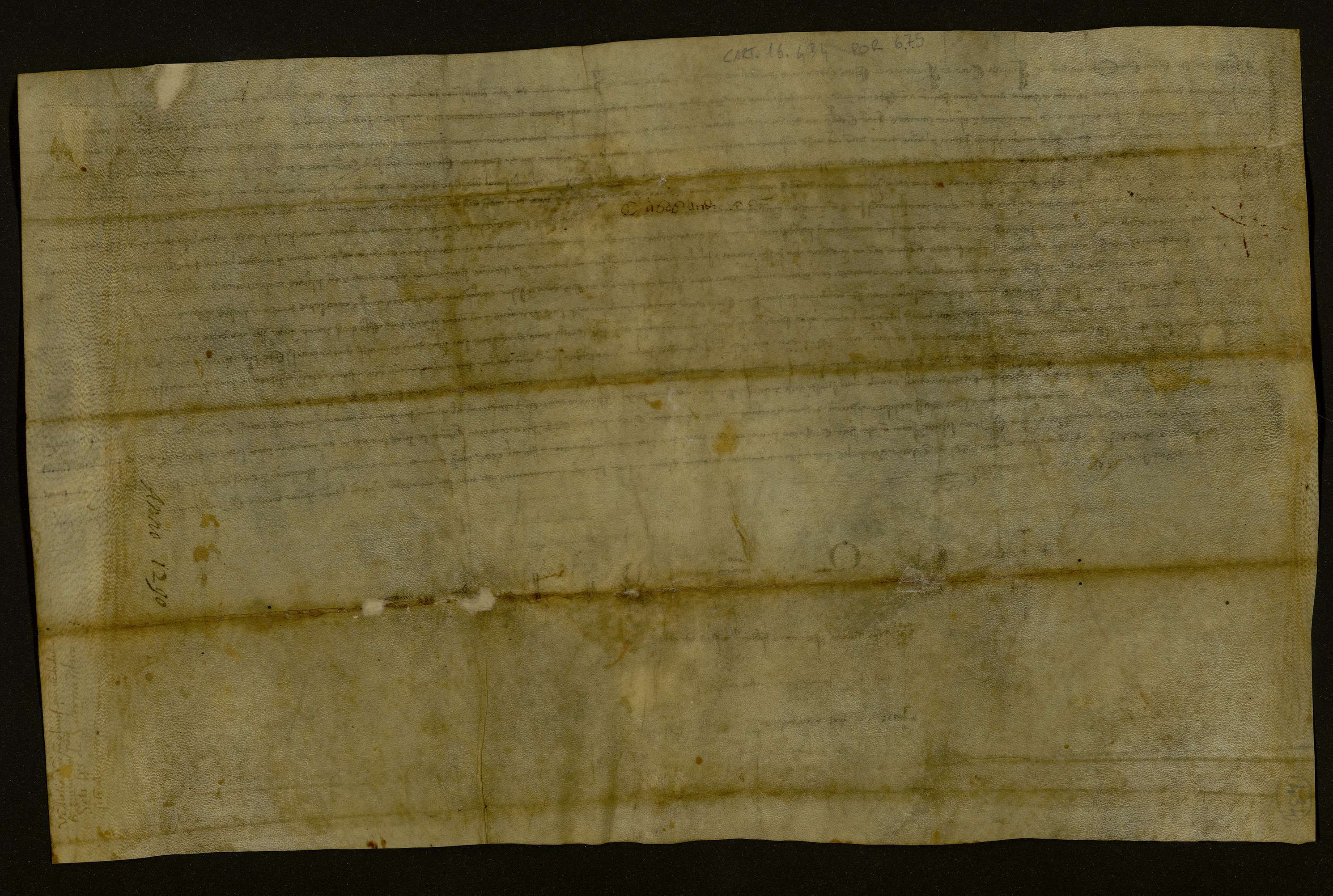 Fra’ Guglielmo di Lando oblato del monastero femminile di S. Spirito di Salerno, autorizzato dalla badessa Clara, vende a Marchisio Barberio detto Cantatore per 6 once d’oro al peso generale del regno due terre con olivi e alberi fruttiferi alla località S. Andrea, di cui una confinante con la via pubblica padulese e l’altra con una terra boscosa di S. Maria Nova. Riccardo Medico, notaio