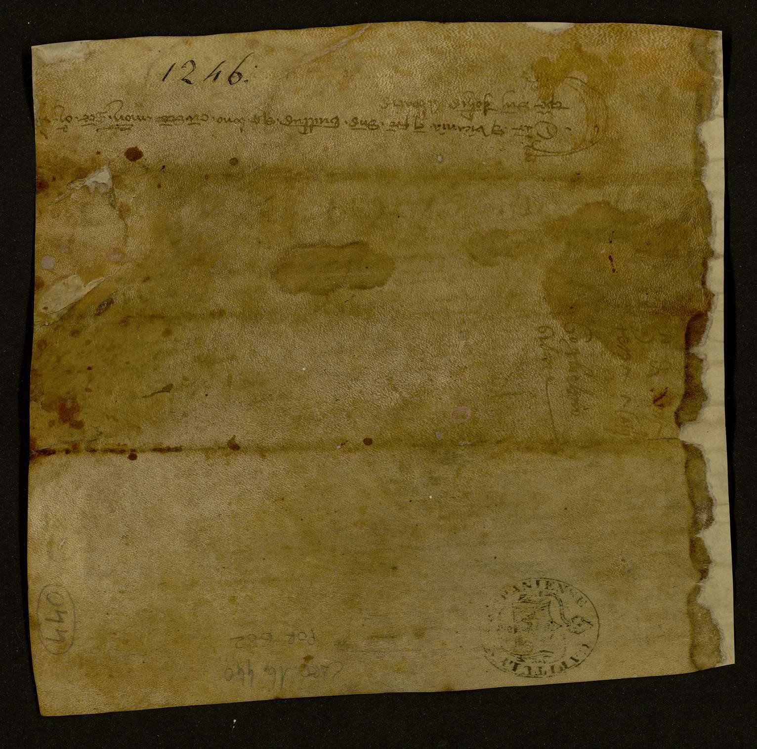 Il milite Guglielmo di Gibone dà a Giovanni abate di S. Maria Nova la metà pro indiviso di una terra laboratoria alla località Calli di Furano e in cambio riceve una casa con solario catodio e scala fabbricata nel casale Giudeca, confinante con beni di S. Angelo di Montenero. Imperato, notaio