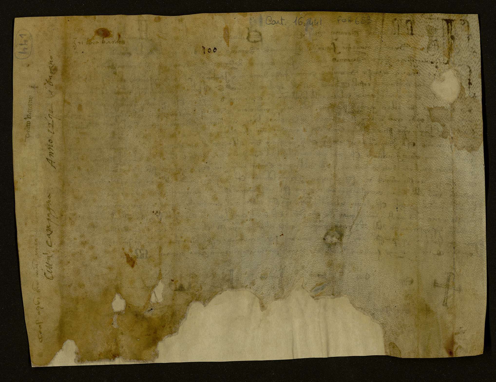 Tommaso Apuberto vende a Giovanni abate di S. Maria Nova di Calli per 18 tarì d’oro la metà pro indiviso di una terra laboratoria alla località Varano, di cui lo stesso monastero possedeva già la metà. Francesco di Cennamo, notaio