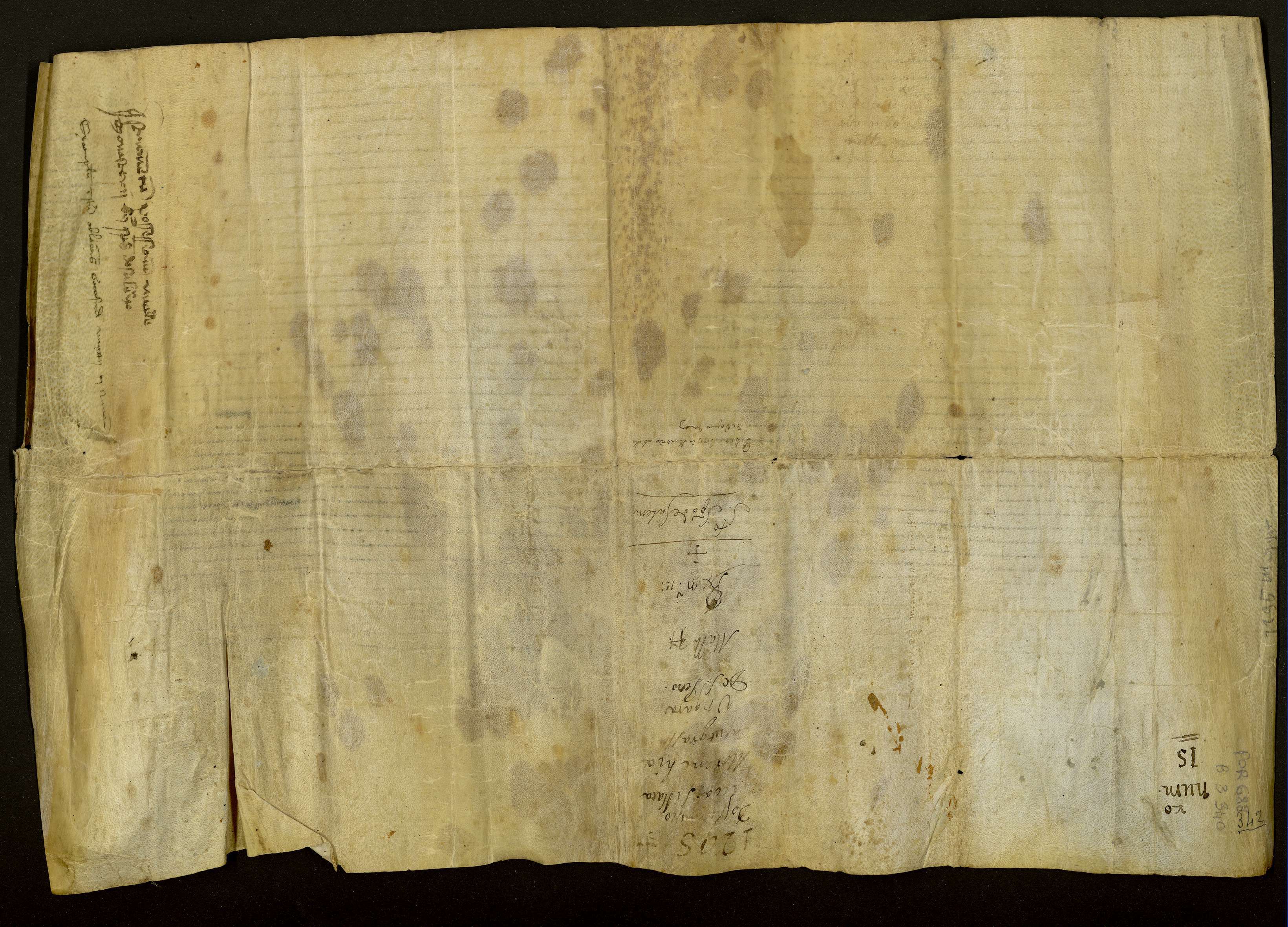 Transunto di uno atto di donazione innanzi al giudice Pandolfo Capograsso. Goffredo Ungaro " de Nuceria christianorum”, del fu Theodori, chiede che venga transuntato uno atto del 1285 col quale egli e la moglie Stefania donavano al monastero di S. Spirito tutti i loro beni in Nocera, nelle località "a lu turiellu" presso la chiesa di S. Giuliano, santu Petro, casa cupeta, casolla, ecc. Notaio del transunto Matteo Buccamugelli