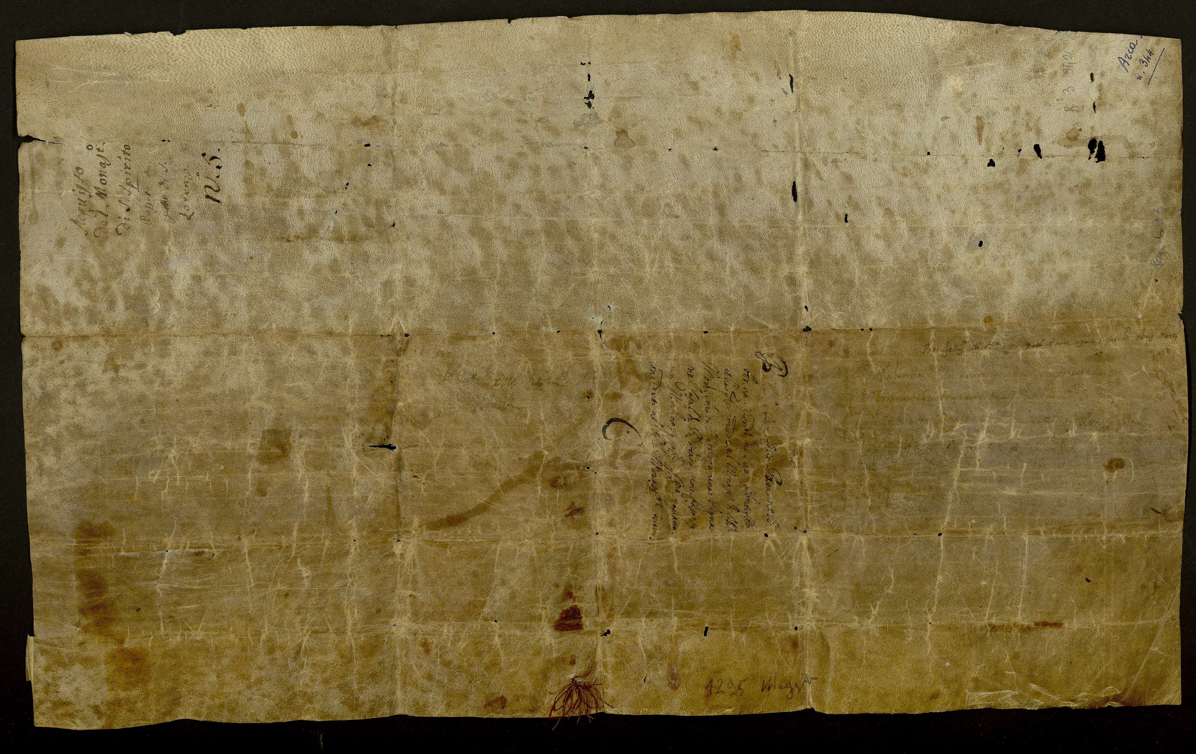 Bolla originale di Bonifacio VIII " Nuper fuit” che, ad istanza di Giovanna, abbadessa del monastero di S. Lorenzo de monte in Salerno, autorizza il trasferimento dei beni donati alla detta Giovanna da suo padre Giovanni da Procida, e di quelli dati dai rispettivi congiunti alle religiose Francesca da Salerno e Giacoma di Oliveto, quando esse erano nel monastero di S. Spirito della stessa città, da questo monastero a quello di S. Lorenzo.