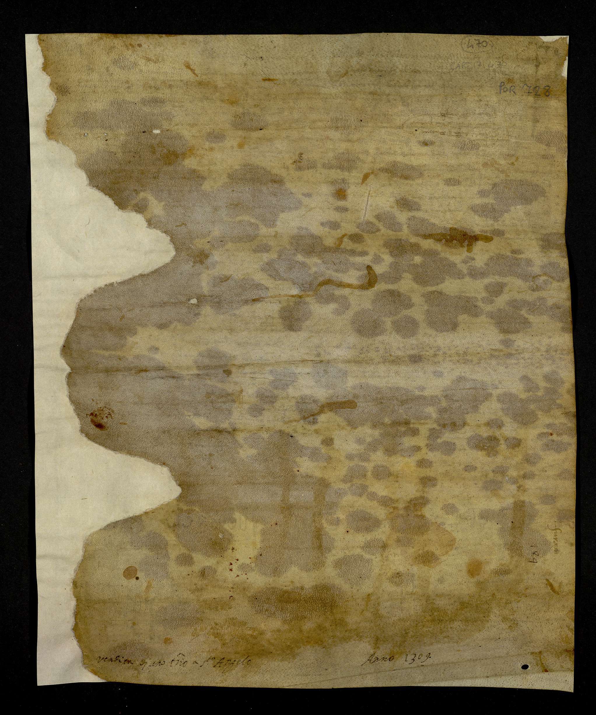 Riccardo Frunzo e suo figlio Gibbone chierico vendono a Matteo Cennamo, al prezzo di 8 once di carlini d'argento, una terra con alberi di olive ed altri arbusti sita nel territorio di Campagna in località S. Angelo di Furano, confinante con gli oliveti di Nicola Capaccio, quelli di Marcuccio Guillotto e la terra appartenente alla chiesa di S. Matteo di Salerno. Riccardo Frunzo, notaio