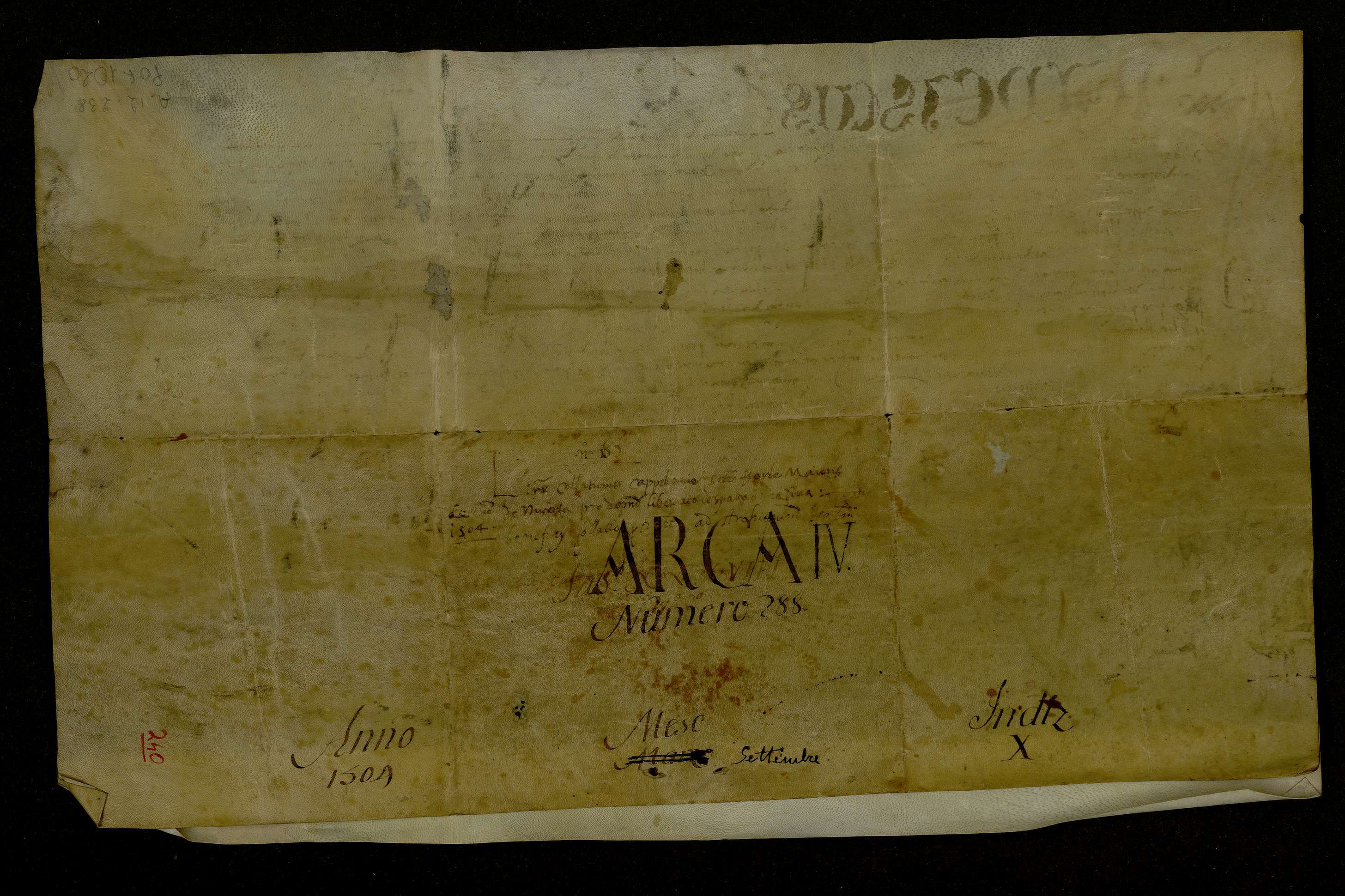 Bolla di Francesco Bezerillo, vicario generale dell'arcivescovo di Salerno, che conferisce a D. Liberato Sparano di Cava una delle due cappellanie, in S. Maria Maggiore di Nocera. Luigi Aurofino, notaio.