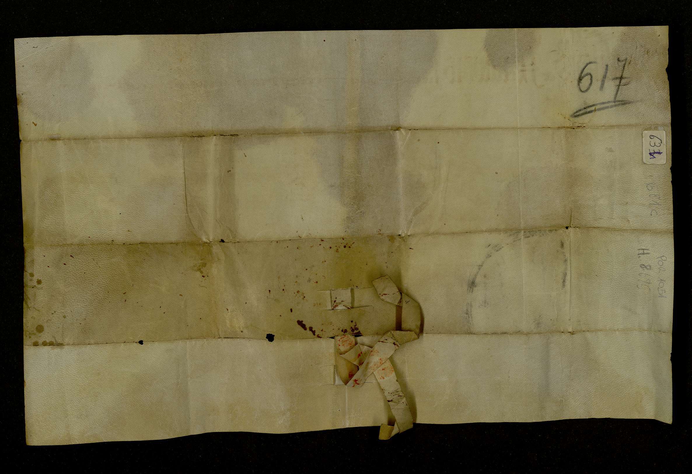 Callisto de Amadeis, iuris utriusque doctor, prothonotarius apostolicus, uditore ed esecutore apostolico, avendo Melchiorre Guerriero ceduto in locazione a Ferdinando Orsini, duca di Gravina, un terreno sito in Campagna in località Starza, da questi successivamente assegnato a Giovanni Pietro De Nigris, ordina che il subaffittuario, insolvente, versi a Melchiorre Guerriero i 200 ducati d'oro al tempo pattuiti. Ioannes Iac(obu)s Bucca, notaio.