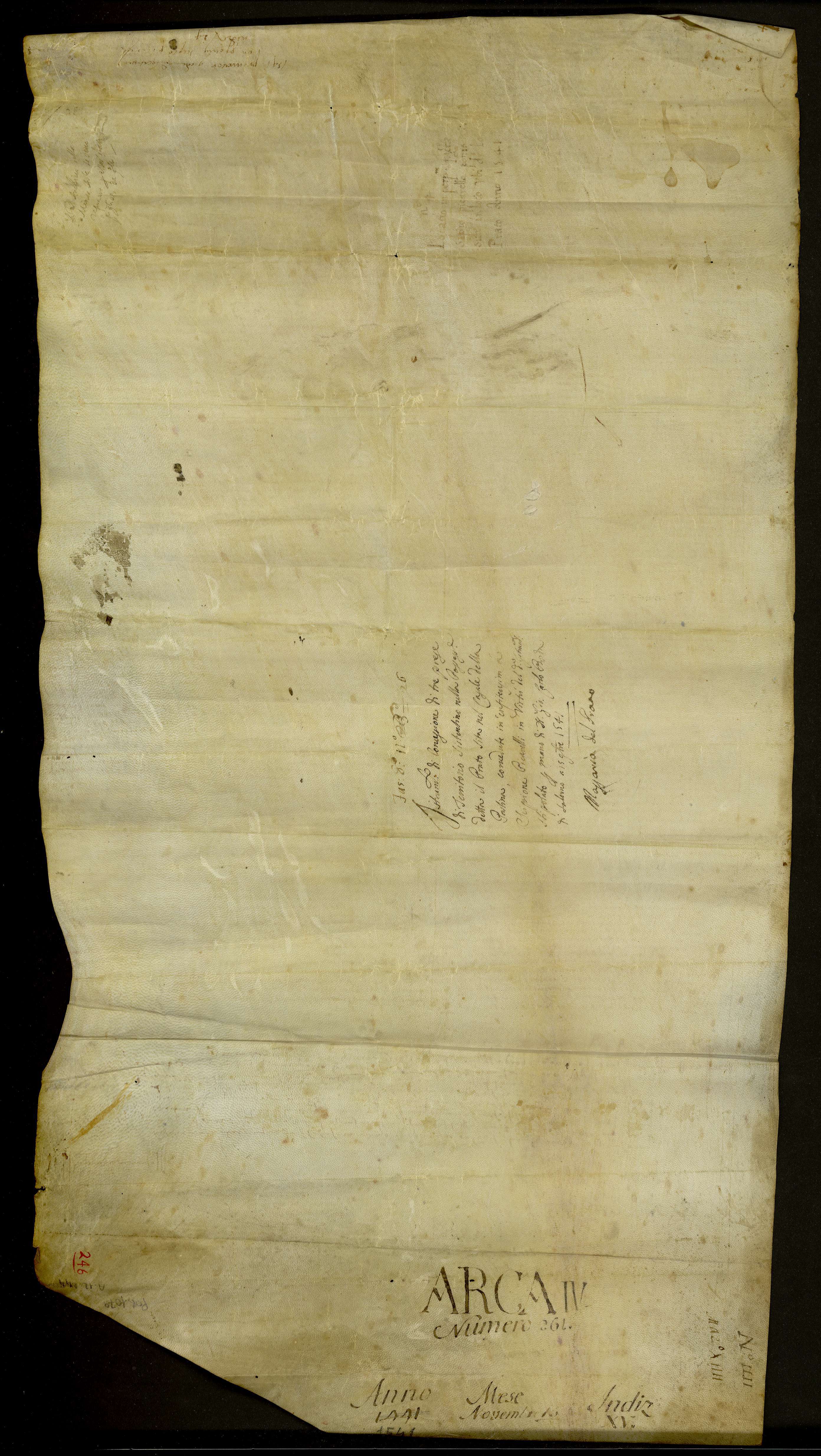 Atto di enfiteusi, innanzi al giudice Giovanni Angelo de Aurofino di Salerno. D. Antonio de Matteis, chierico della diocesi di Arezzo, procuratore del S. Collegio dei Cardinali e dell'arciv. Nicola Rodolfi, cede in enfiteusi ad Amato Angelo Picarelli di Pastena alcuni terreni nello stesso casale, in loco ubi dicitur lo Prato,dell'estensione di 12 tomoli circa. Giovanni Carlo Borda, notaio