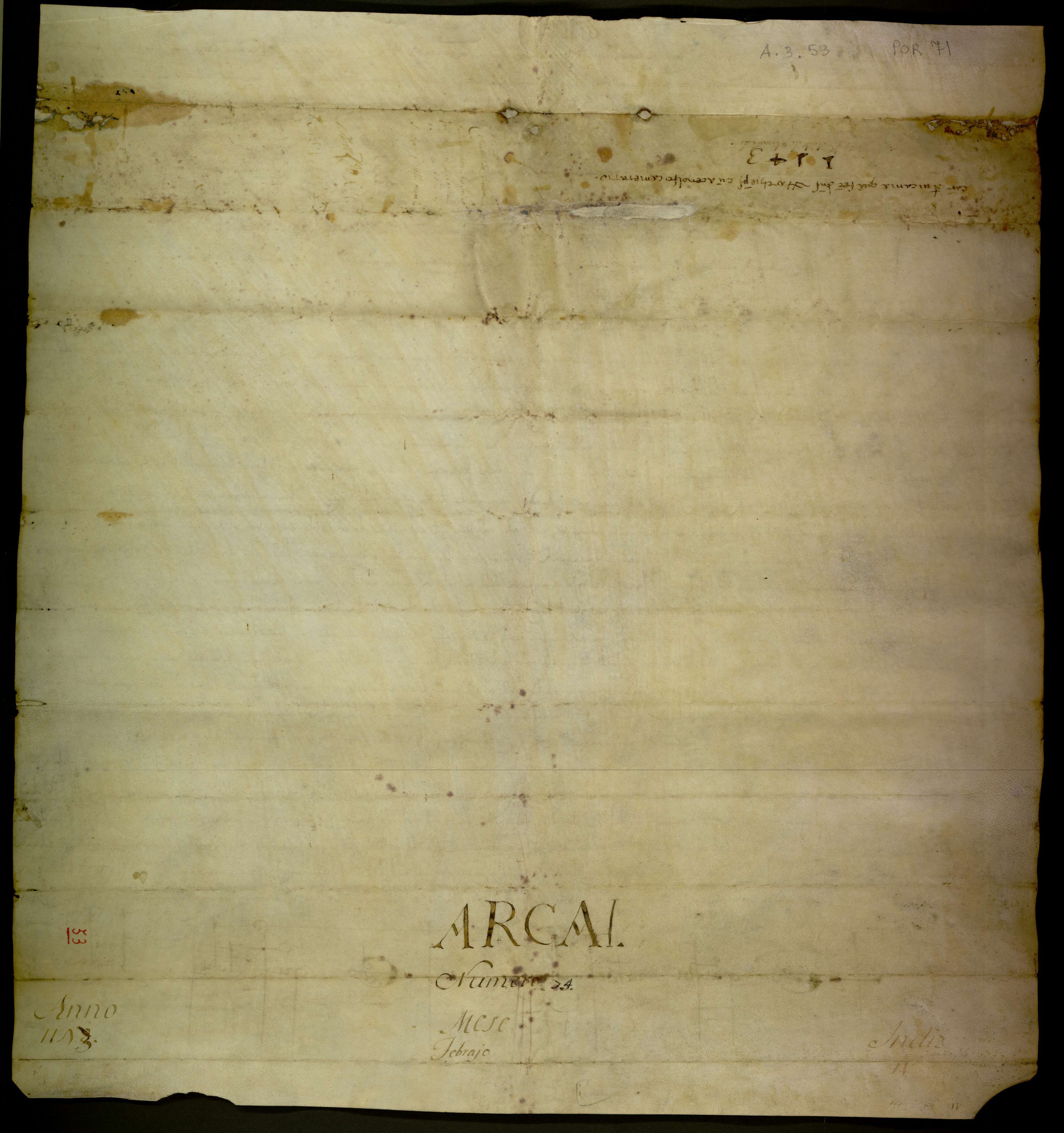 Strumento di permuta tra l'Arcivescovo Guglielmo ed Atenolfo figlio di Giovanni, abate di S. Maria de Alimundo in Salerno. Atenolfo cede alla mensa arcivescovile una terra con casa in Salerno presso la piazza del Mercato e l'Arcivescovo cede ad Atenolfo una terra con case in Salerno presso l'Orto grande e piazza Elina. Landolfo, notaio