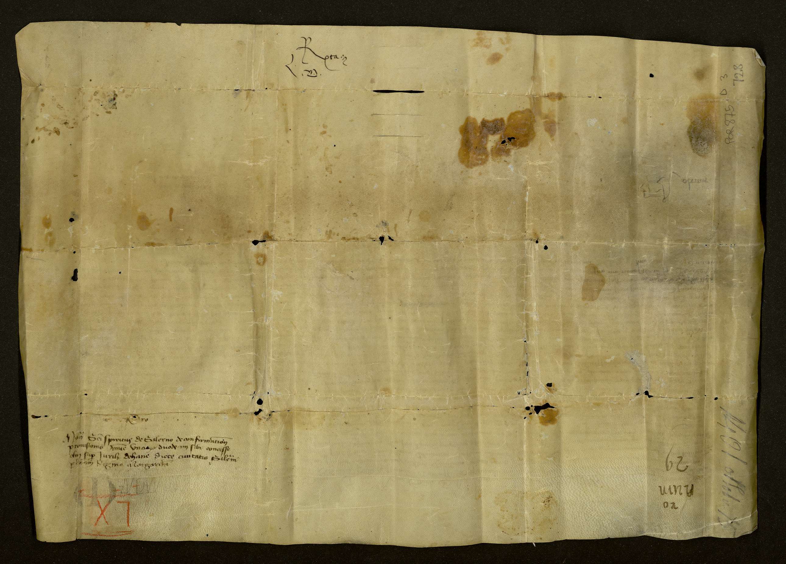 La regina Margherita di Durazzo riconferma allo stratigoto, ai doganieri e ai fondacari della cittò di Salerno l'ordine già dato dai suoi predecessori di corrispondere al monastero di Santo Spirito di Salerno, dell'ordine di Santa Chiara, la provvigione annua di 12 once d'oro sui diritti, redditi e proventi del fondaco e della dogana di Salerno.