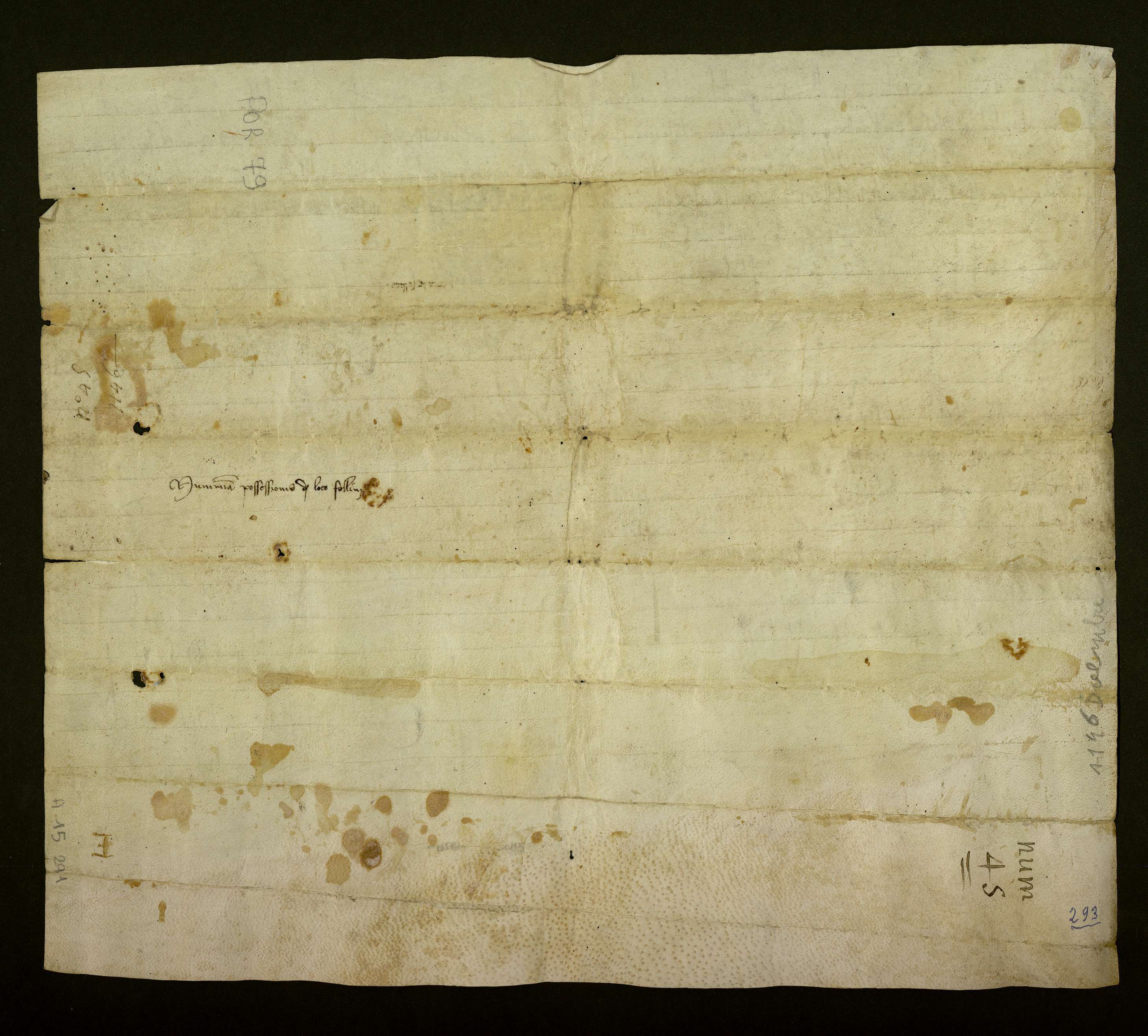 Cesario detto dell'Acqua, figlio del fu Costantino fabbricatore, vende al prezzo di sessantotto tarì a Monsone detto de Penta, figlio del fu Landolfo, cinque appezzamenti di terra e due parti di un sesto e tutto quanto era di sua proprietà di una terra con vigna ed alberi fruttiferi siti fuori Salerno, in località Felline. Ademario, notaio